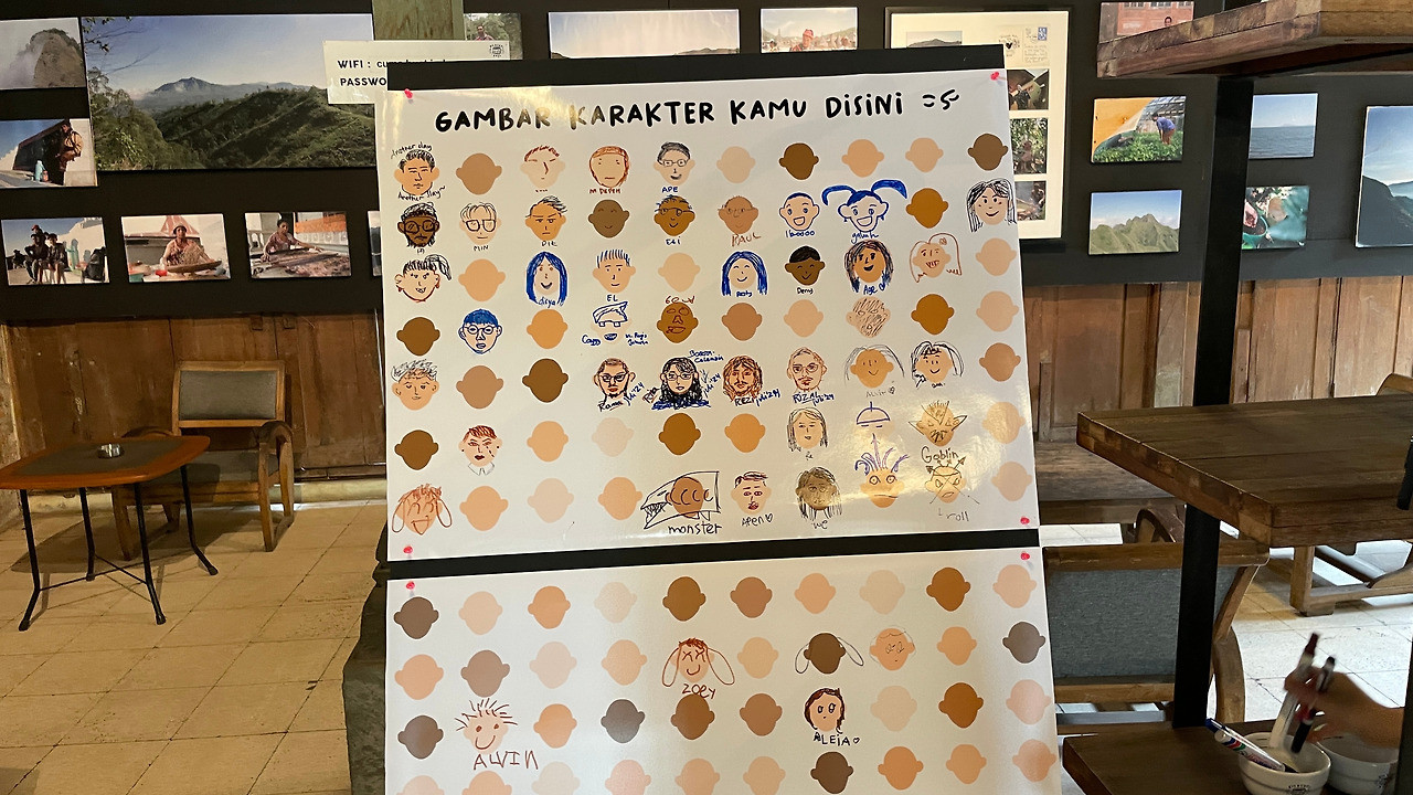 카페 한편엔 얼굴 그릴 수 있게도 해놨다.