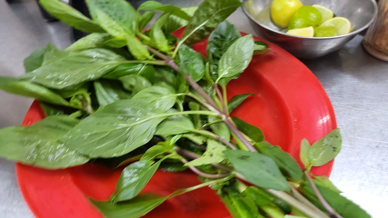 민트? 바질? 같은 건데 국물에 넣어먹으면 맛있다.