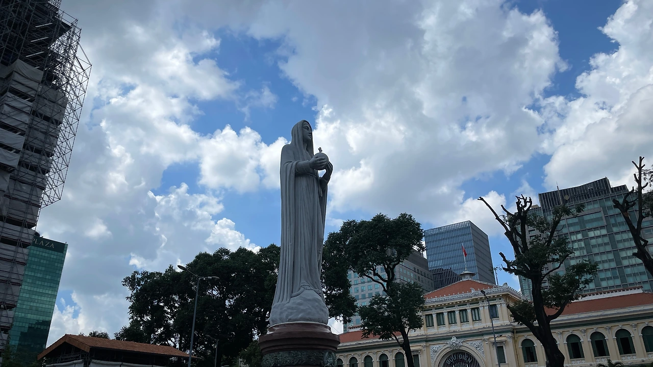 천주교가 믿는 마리아 동상을 보며 만족한다