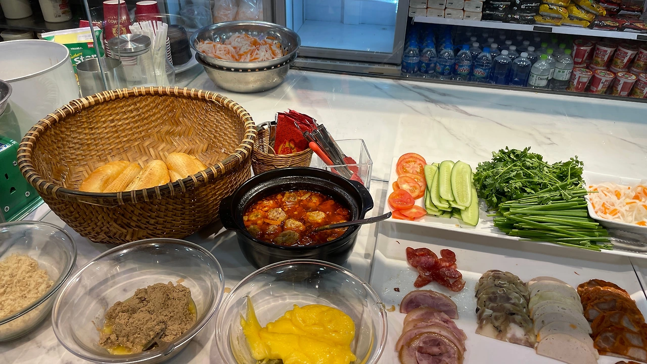 첫날 들렀던 유명한 베이커린데 반미를 직접 셀프로 만들 수 있다
