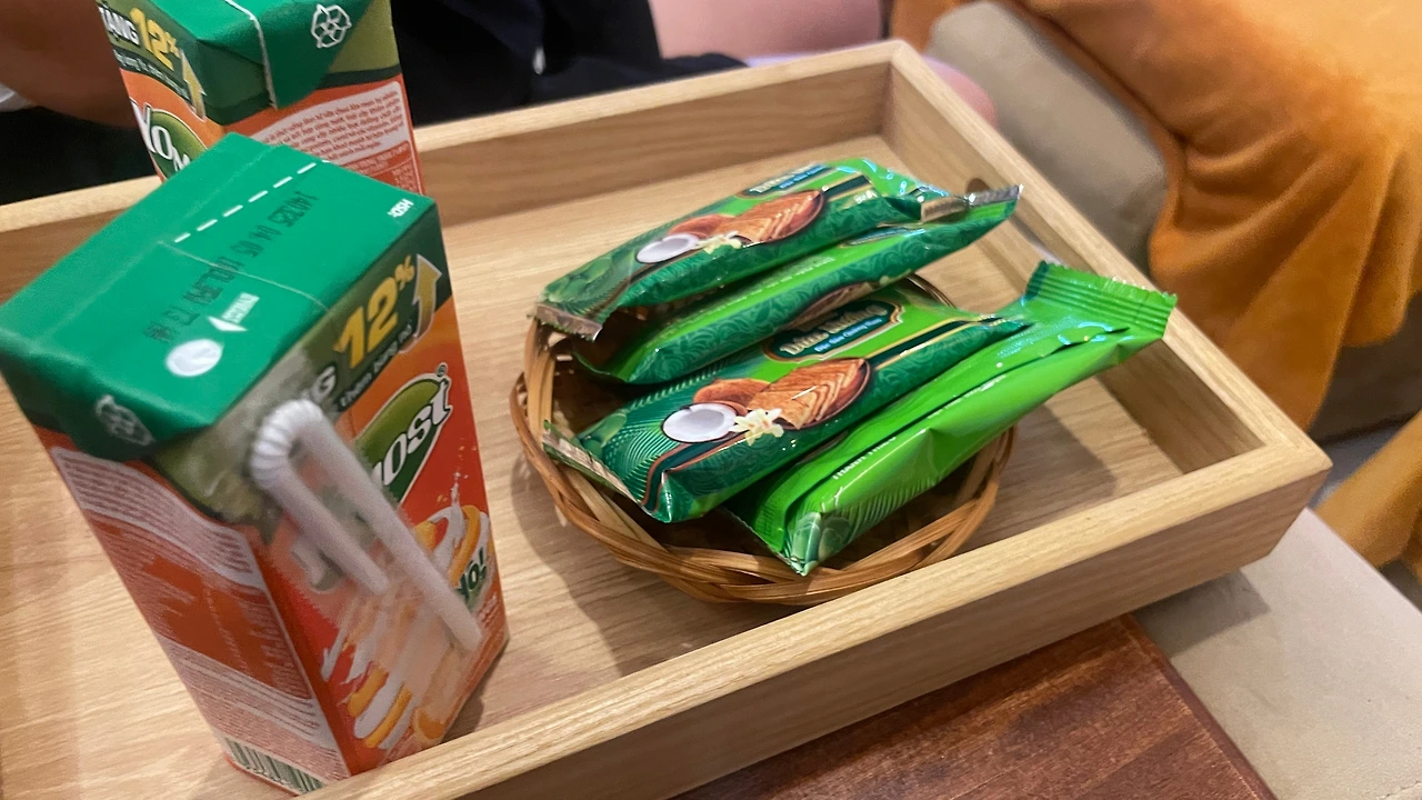 끝나고 받은 음료와 과자