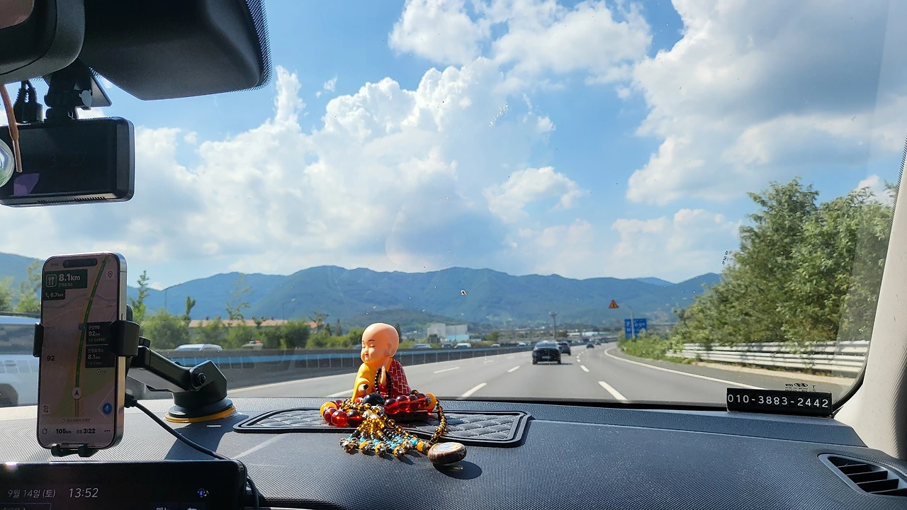 차 안에서 보는 날씨는 참 좋아 보인다