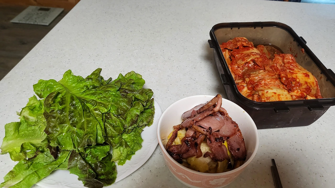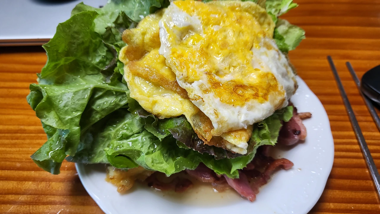 오늘 아침, 오리계란쌈채소 (No 밥)