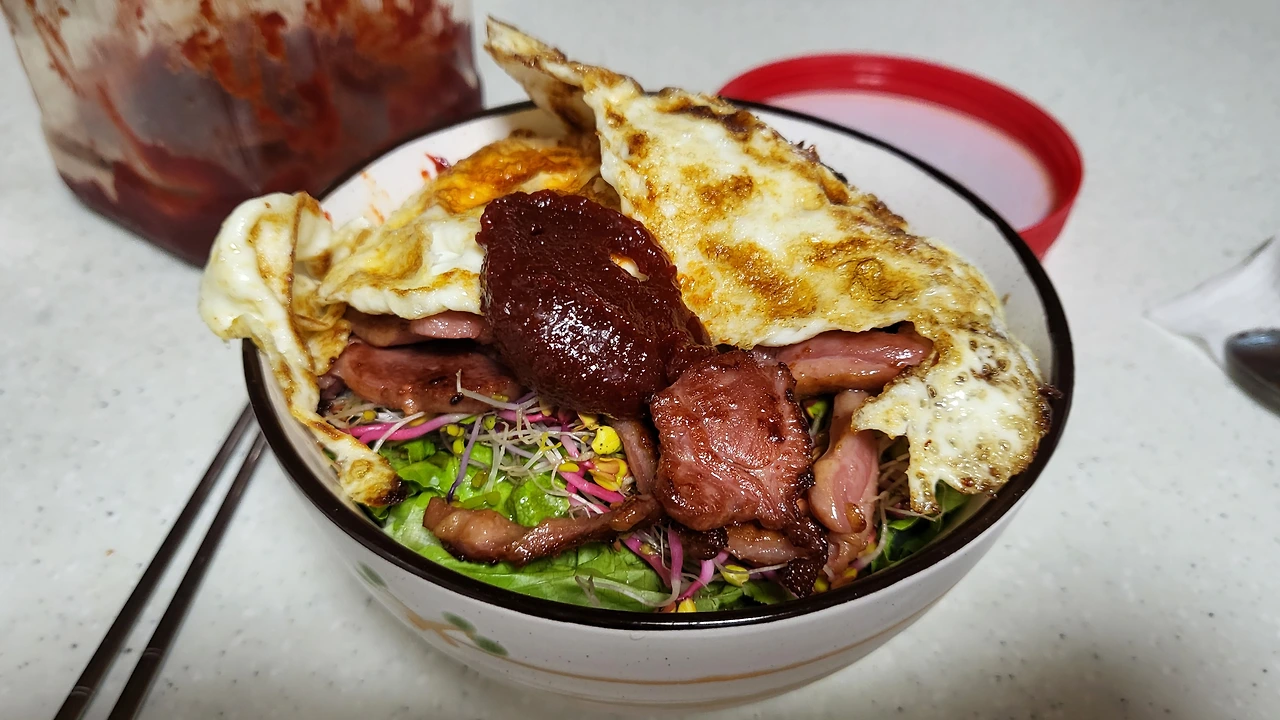 오늘 첫끼는 오리새싹상추계란비빔밥 ㅎ