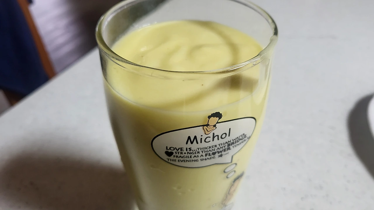 고구마라뗀데.. 우유가 부족한지 죽 같다. (발음 조심)