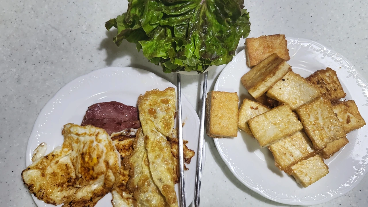 일단 첫끼는 두부, 오리, 계란 쌈 (No 밥)