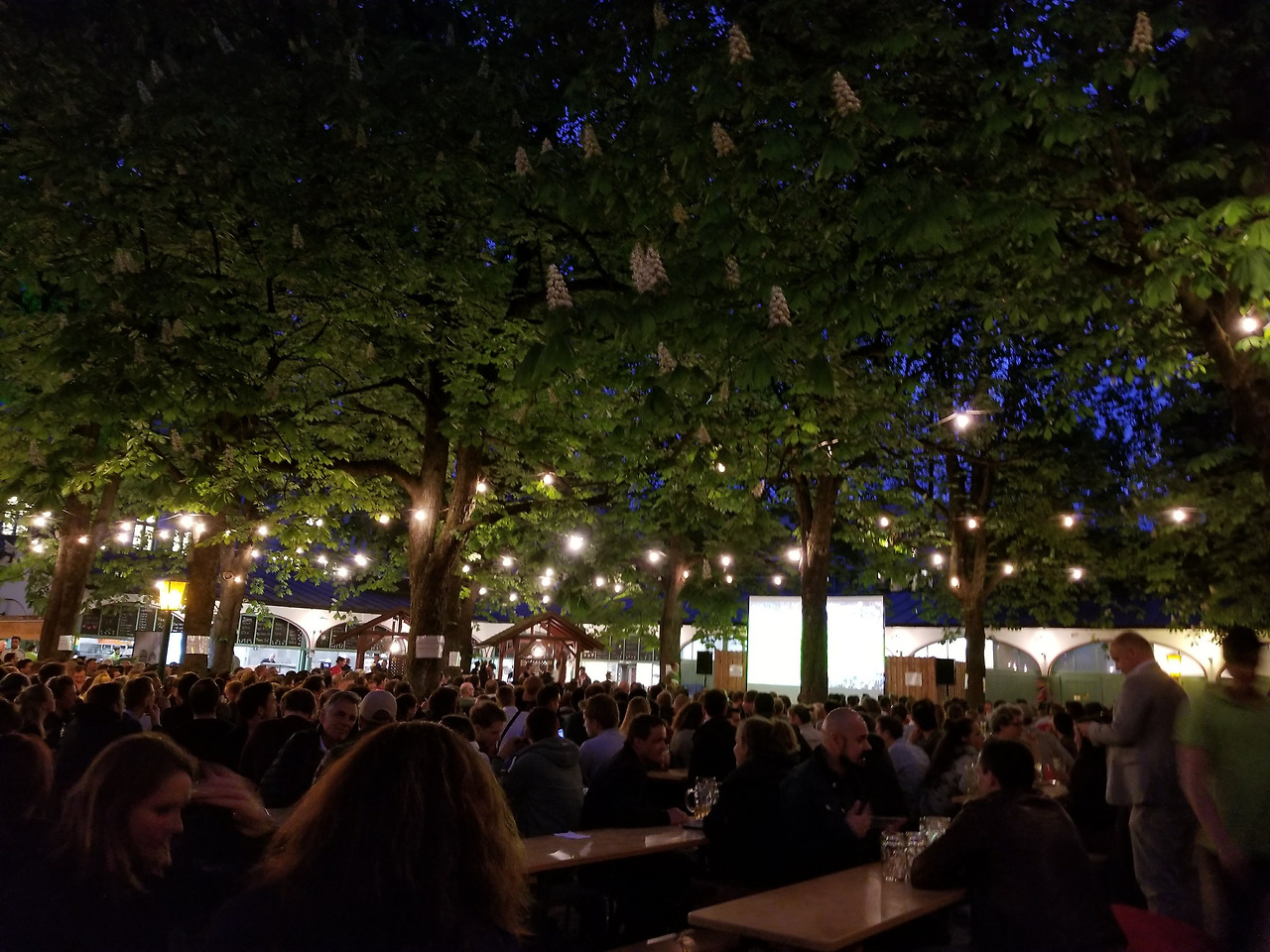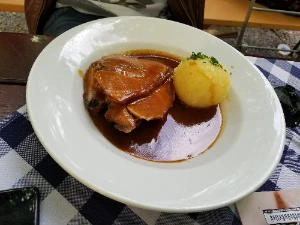 그날은 마침 FC 바이에른 뮌헨과 레알 마드리드의 챔피언스리그 준결승전이 열리는 날이었다. 슈테판은 나를 **뮌헨의 대형 비어가든 중 하나인 호프브로이하우스(Hofbräuhaus)**로 데려갔다. 야외 좌석은 이미 사람들로 가득했지만, 다행히 빈 자리를 찾아냈다. 우리는 시원한 맥주와 학세(Haxe, 독일식 족발)과 슈바인브라텐(Schweinebraten, 바이에른 지역의 전통 요리 중 하나인 **쇠고기 또는 돼지고기 브라텐(Braten)**)며 경기를 보기 시작했다.