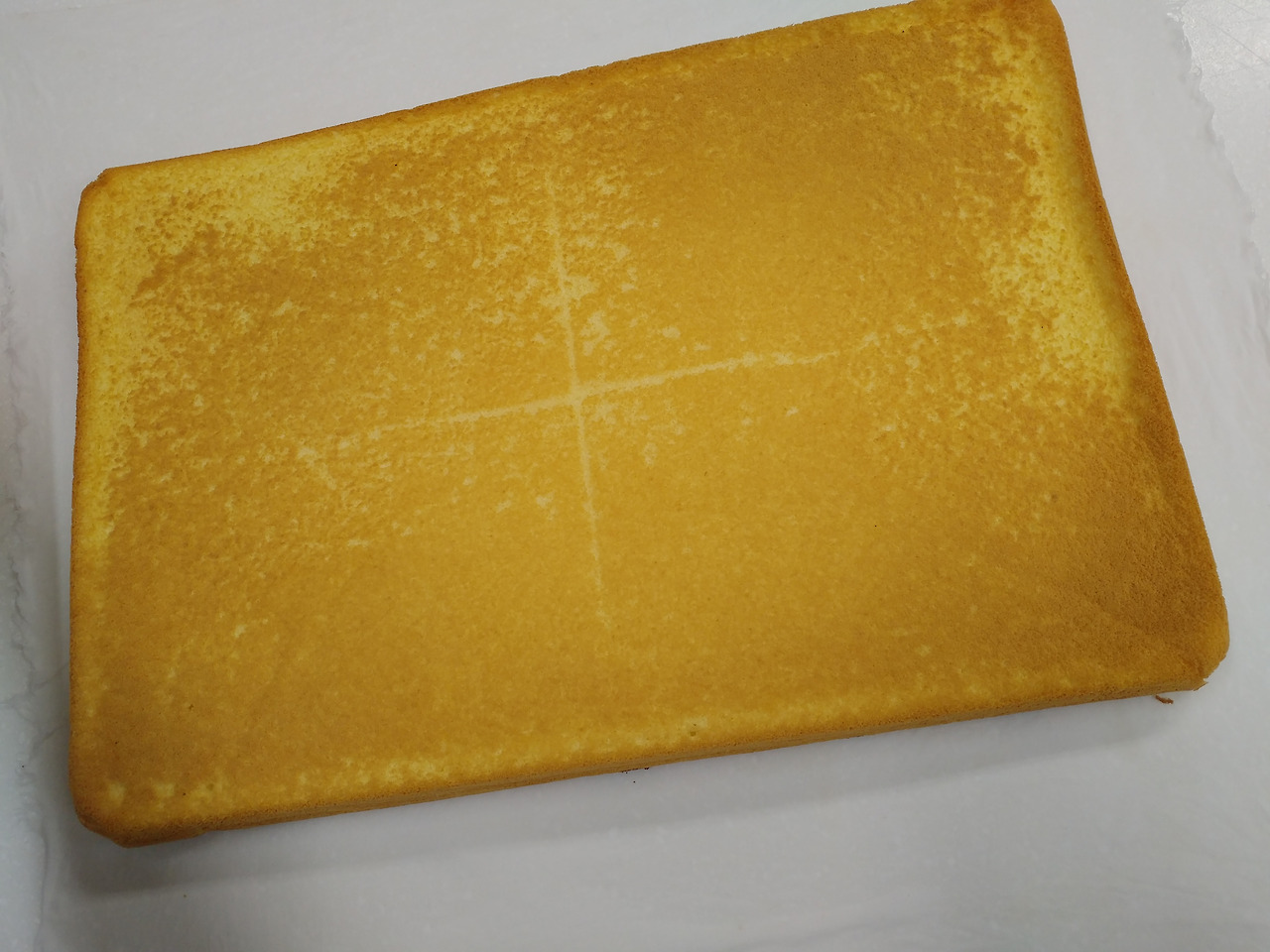 10. 팬에서 꺼낸 케이크 시트에 분무기로 물을 뿌리고 유산지를 거둬냅니다.