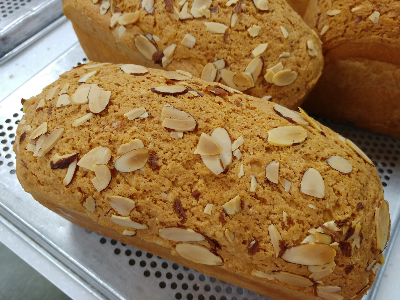 갓 구워낸 밤식빵은 겉은 바삭, 안은 촉촉한 빵 결을 자랑한답니다. 빵 속에 꼭꼭 숨은 밤알을 만나는 것도 밤식빵을 먹는 즐거움 중 하나죠.