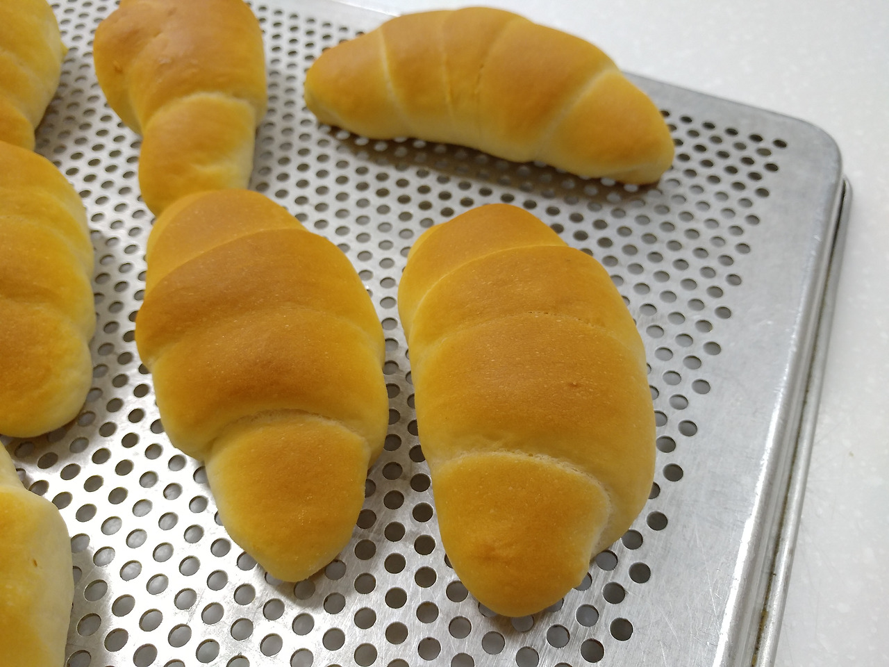 버터롤은 오븐에 굽는 시간이 짧기 때문에 오븐에 넣고 7분 정도 지나면 계속해서 오븐을 살펴주시는 것이 좋아요. 100g 이하의 분할 반죽으로 만드는 빵의 경우 조금만 늦어지면 제품이 쉽게 탈 수 있기 때문이랍니다.