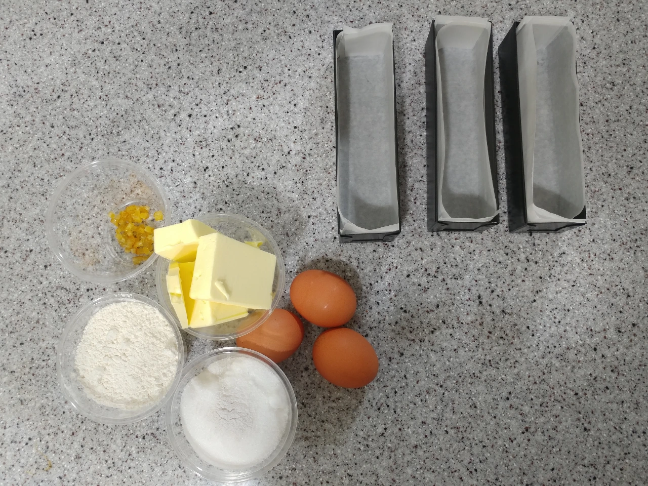 파운드케이크의 파운드는 약 453g을 의미해요. 이름에서 추측할 수 있듯 파운드케이크는 밀가루, 설탕, 버터, 달걀이 각각 1파운드씩 들어간답니다. 오늘 만들 파운드케이크는 밀가루 양이 다른 재료에 비해 조금 더 많이 들어가요. 그것 빼고는 다른 재료들이 1:1:1의 비율로 들어가요.