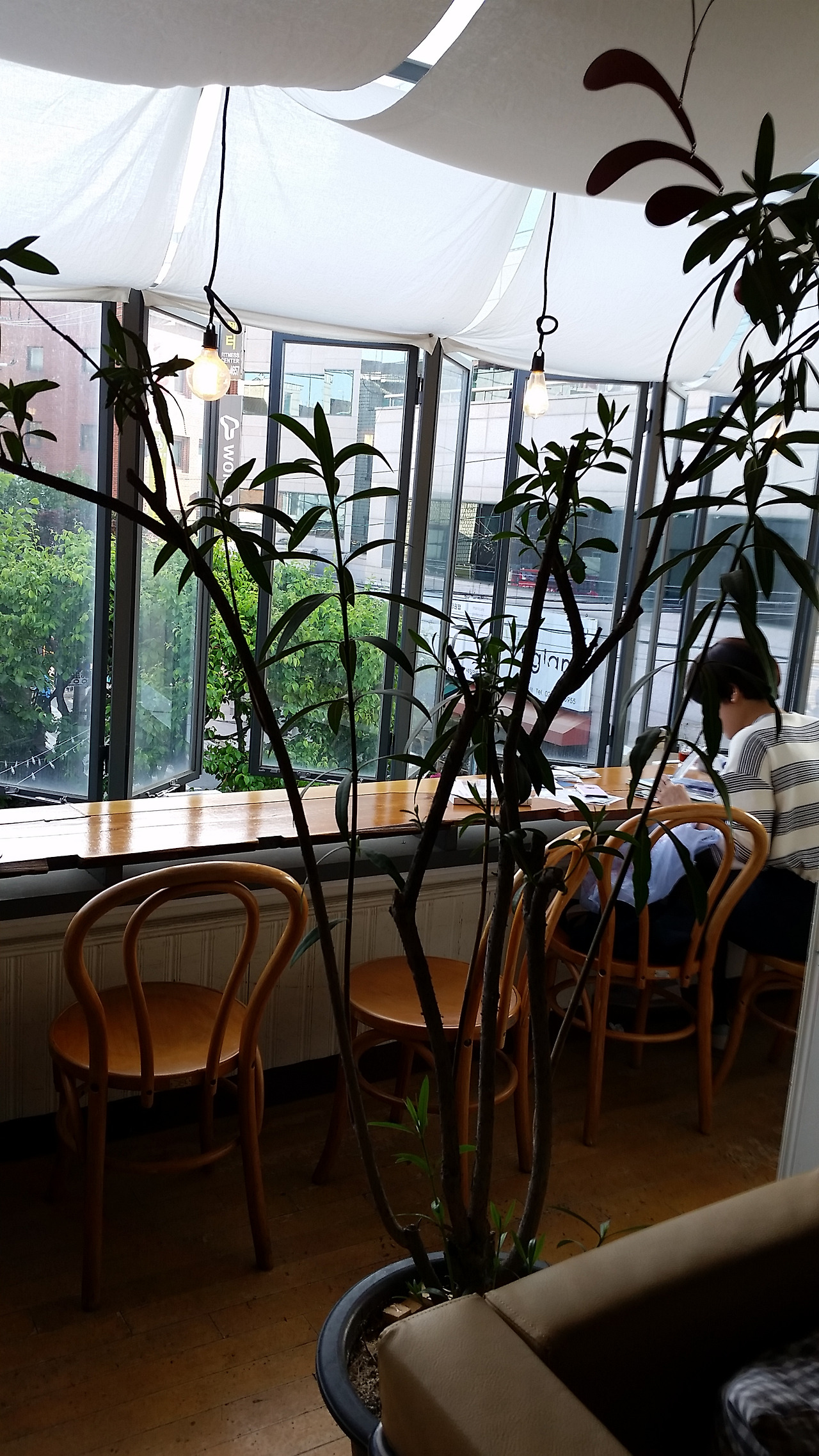 창가 앞 자리가 탐나긴 했지만 자리가 없었습니다. 밤에는 이 곳이 가장 인기 있다고 합니다.