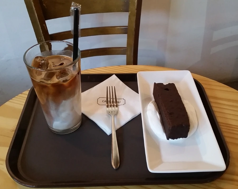 초콜릿케이크가 독특하게 나오죠? 케이크 아래에 깔린 것은 생크림이고, 케이크 안에는 맥주가 들어간다고 하네요.