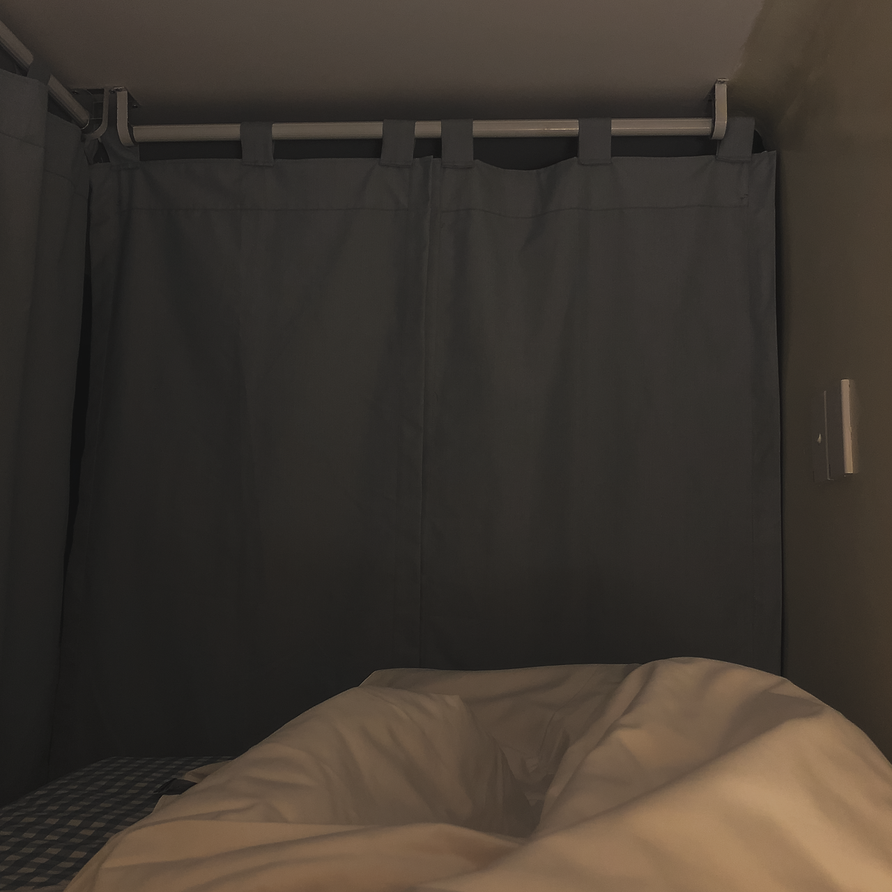 숙소로 돌아오니 불이 다 꺼져 있고, 몇몇 침대의 커튼 사이로 노란 불빛이 새어 나왔다.