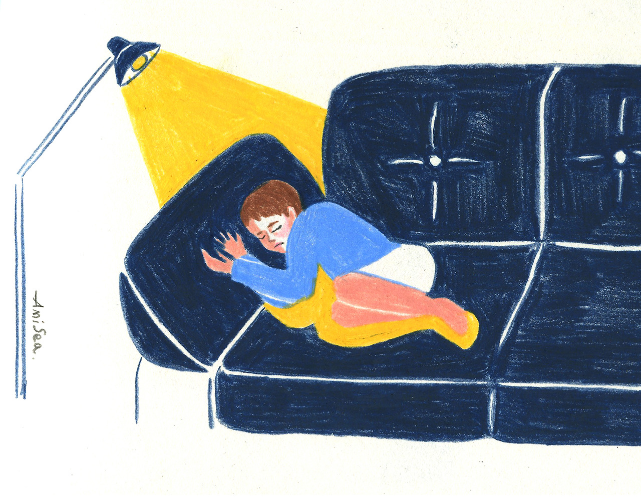 귀를 쫑긋 세우고 바깥 동태를 살피던 저는 마루의 기척이 잦아들자마자 크게 틀어놓았던 TV를 끄고 살금살금 밖으로 나왔습니다. 아이가 소파 끄트머리에서 겨우 쿠션만 하게 몸을 웅크리고 잠들어 있습니다. 그 작은 부피감에 마음이 저립니다. 혼자서 안 자려고 그토록 방문 앞에서, 창문 밖에서 딸그락거리던 아이를 모질게 마음먹고 모른 척했던 게 후회됩니다. 잠든 아이를 자리에 누이려고 안아 올리자 양쪽 팔이 축 처집니다. 아마 깊은 잠에 빠졌나 봐요.