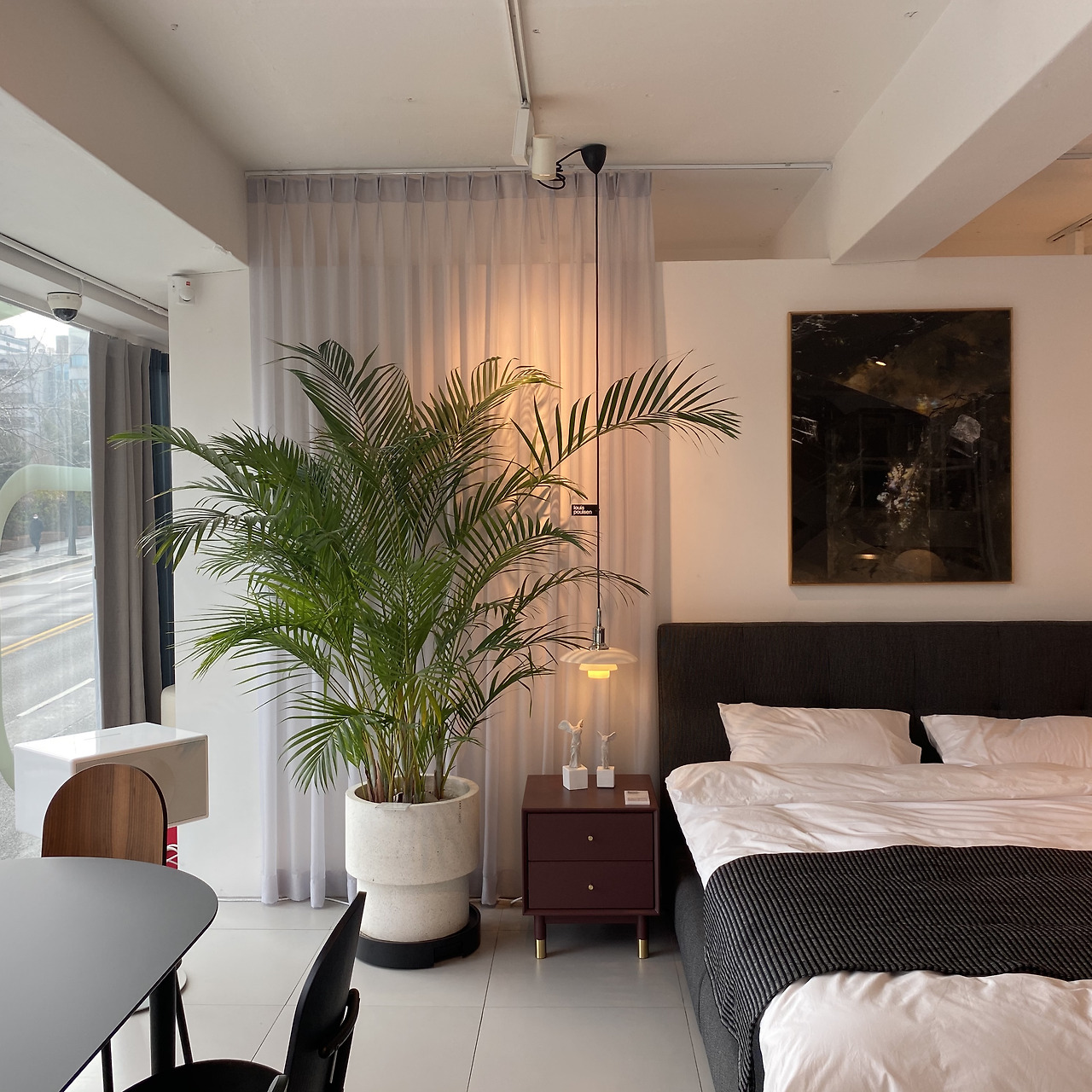 침실과 화장대만 둔 미니멀한 공간으로 연출하자. 아늑한 침실을 위해서 커튼은 달아볼까?