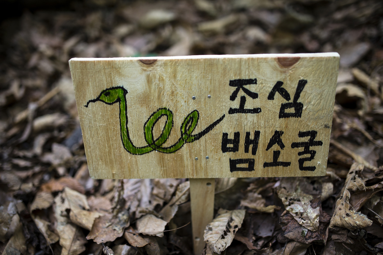 그런데 다행히도 내 걱정과 달리 비밀기지는 온전했다. 위장용으로 덮어두었던 나뭇잎과 풀이 바싹 마르고 삭아서 뼈대가 훤히 드러나 있었지만 어디 한 군데 무너져 내린 곳 없었다. 약탈자들이 이리 저리 헤집으며 다닌 흔적이 주위에 무수한데, 왜 우리 비밀기지만 멀쩡할까? 그 이유를 곰곰이 따져보는데, 아이가 팻말을 가리켰다. ‘조심, 뱀 소굴.’ 아, 그렇지. 혹시라도 누군가 침입할까봐 팻말을 여러 개 박아뒀었다. 앞서 사람들이 발길을 돌리도록 설치했다고 언급한 장치가 바로 이 팻말이었다. 그게 효과가 있었던 모양이다. 작전이 멋지게 들어맞았다. 우리는 서로를 바라보며 흐뭇하게 미소를 지어보였다. 사실, 전혀 무섭지 않게 그려진 뱀과 어설프게 지은 움막 같은 것을 보면서 무서운 뱀소굴이라고 움찔했을 사람은 없었을 것 같다. 아마도 아이들끼리 혹은 어느 가족이 재미있는 시간을 보내는 소중한 장소로 생각하지 않았을까? 그래서 우리의 비밀기지가 무사했다고 보는 게 합리적이긴 하지만. 어쨌든 그날 우리는 다시금 비밀기지에 낙엽을 충분히 덮어서 위장한 후, 그 내부도 말끔히 정리했다.
