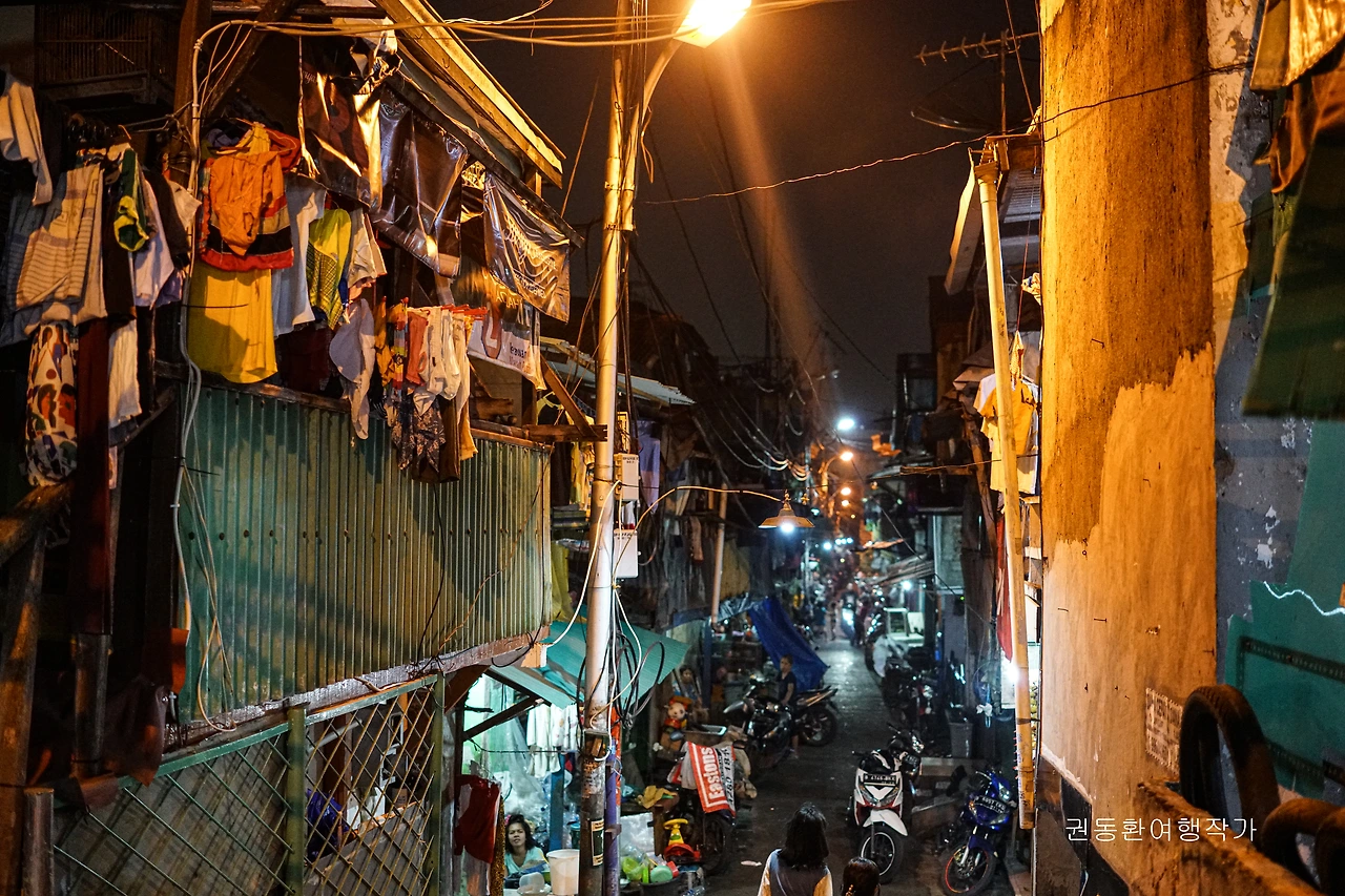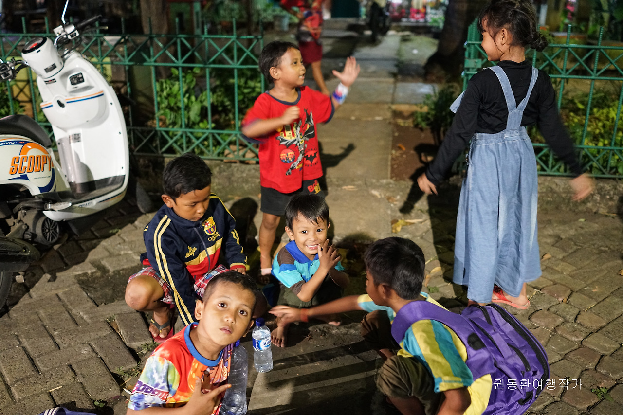 자석처럼 끌어당기는 그 마을로 발걸음의 방향을 바꾸었다. 태어나 처음 보는 비둘기집, 아무렇게나 널어놓은 빨래, 페인트가 벗겨진 벽 그리고 비교적 하얀 피부의 동양인을 궁금해하는 인도네시아 사람들의 눈빛으로 거리를 메웠다. 멀리서 바라볼 때는 무겁지 않은 분위기였는데 막상 걷다 보니 뭔가 위협을 당할 것 같은 두려움이 살짝 샘솟았다.