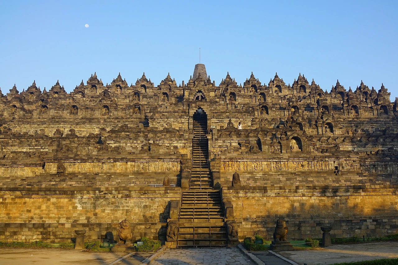 여느 사람 사는 곳과 특별히 다르지 않게 가게 오픈을 준비하는 사람, 신문을 배달하는 사람, 출근을 하는 사람들을 지나치며 도착한 보로부두르는 짙은 안갯속에 가려져 신비스러움이 가득했다. 오토바이를 주차한 뒤 매표소로 향해 발걸음을 옮겼다. 표를 구입했지만 입장 시간까지 조금 기다려야 했다. 마땅히 할 것도 없었기에 그냥 매표소에서 가져온 팸플릿을 펼쳤다. ‘언덕 위의 불탑’이라는 뜻을 가진 보로부두르는 누구에 의해 만들어졌는지 아무도 모른다고 한다. 다만, 750~860년경에 세워진 것으로 조사되어 10세기까지 존재했었다. 그런데, 이 사원이 800년 동안 자취를 감췄었다고 한다. 세계에서 가장 위험했던 활화산으로 알려진 므라피 화산이 분화해서 화산재가 보로부두르를 덮었기 때문이다. 그러다가 19세기 무렵, 보로부두르가 다시 뜨거운 햇살에 등장한 것은 한 영국인 덕분이었다. 바로 당시 인도네시아를 통치했던 싱가포르의 아버지이자 영국 총독 토머스 스탬퍼드 래플스 경이다. 말레이 문화권에 대한 해박한 지식을 갖추고 있었던 그는 다양한 자료를 통해 보로부두루를 발굴한 것이었다.