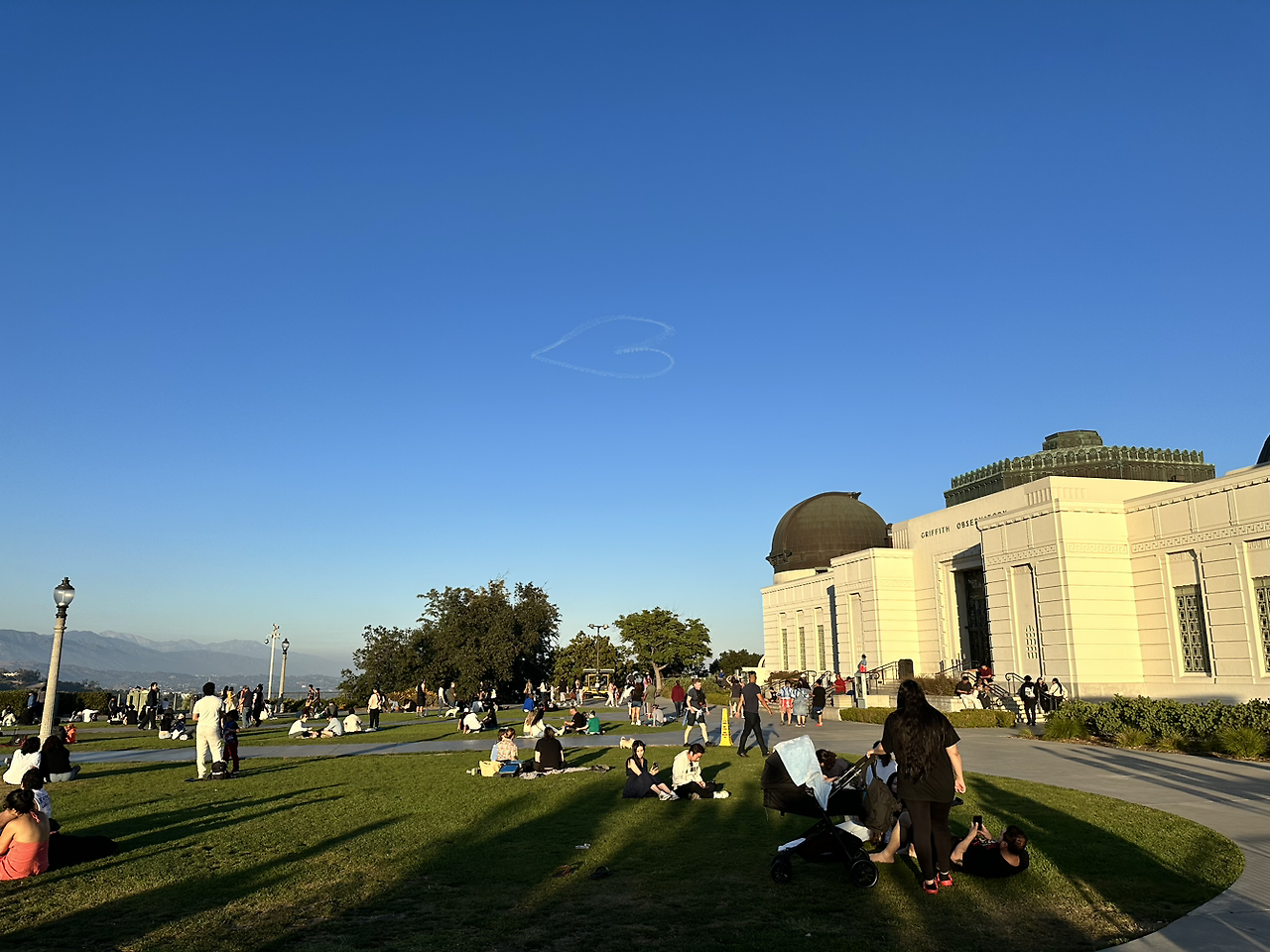 그렇게 떠난 곳은 영화 라라랜드의 실제 배경지인 그리피스 천문대였다. 바로, 이곳에서 운명적으로 예상하지 못한 선물을 미국에 받았다. 그리피스 천문대는 피크닉을 나온 사람들로 가득했다. 푸른 하늘, 하얗고 거대한 그리피스 천문대, 들떠 있는 사람들의 조합은 마치 이곳이 천국이라고 해도 믿을 것 같았다. 천문대의 맞은편에는 영화에서만 보던 'hollywood sign'을 볼 수 있었다. LA와 Hollywood를 상징하는 할리우드사인은 간단한 눈요기와 더불어 반가움이란 감정을 느낄 수 있었다.