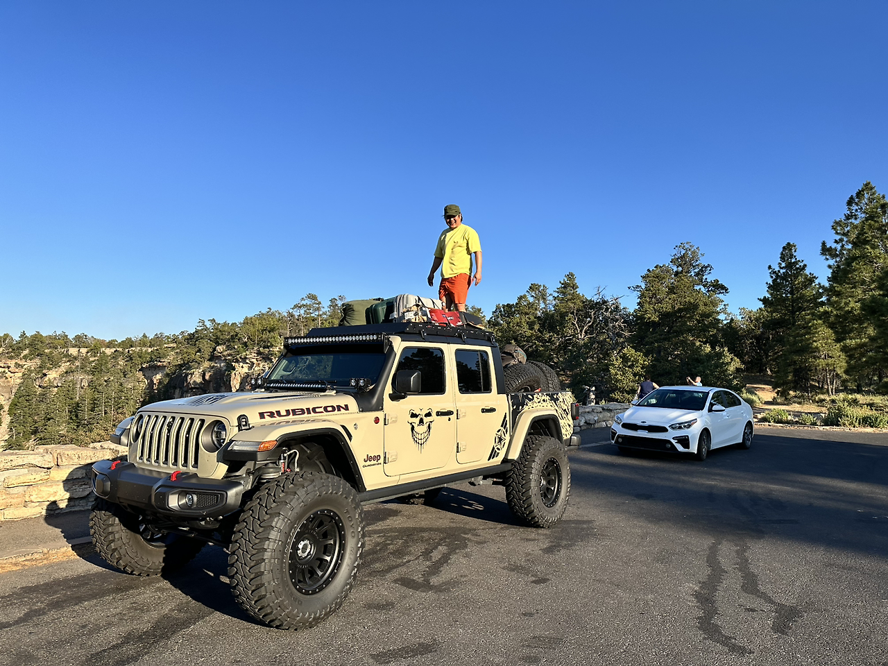 하지만, 나는 도전과 모험 그리고 운전에 대해 자신감이 있는 여행자였다. 정중하게 그의 요청을 받아들여 1.3미터 높이의 차량에 탑승하고 운전했다. 차량의 높이를 올리는 인치업 튜닝이 되어있는 그의 글레디에이터는 보이는 시야가 나의 ‘무쓰’랑 전혀 달랐다. 신세계를 경험하는 기분이었다. 그뿐만이 아니었다. 그는 트럭 위에 올라가서 그랜드캐년을 배경으로 기념사진을 촬영해라며 처음 보는 낯선 동양인에게 허용적 태도를 보여줬다. 사실, 이런 에피소드는 누군가에게 아무런 관심도 없는 이야기일 수 있다. 하지만, 최소한 나에게만큼은 미국의 그랜드캐년을 떠올리면 함께 떠올려질 아주 강렬한 추억이 될 것이다. 한국에서뿐만 아니라 머나먼 미국에서도 경험한 'jeep community'.