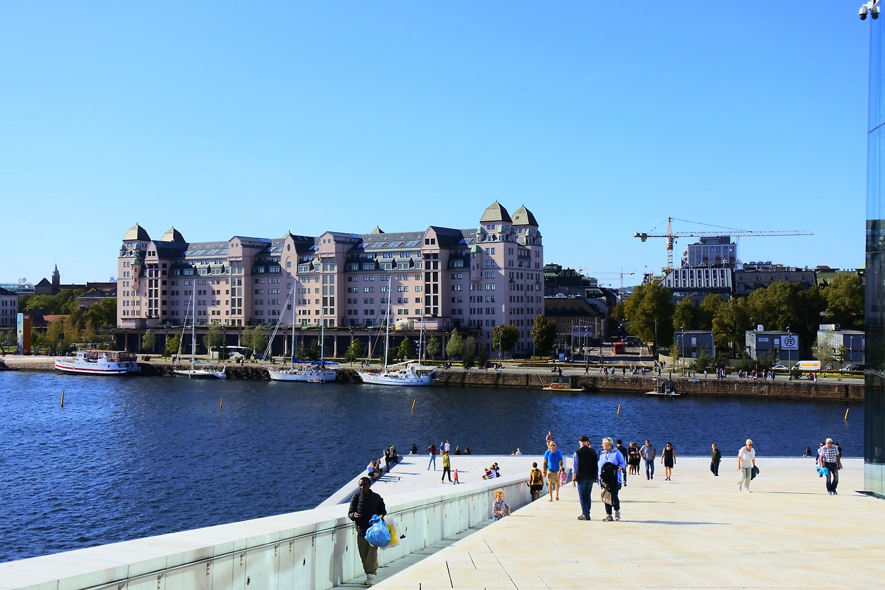 노르웨이 수도 오슬로. 오슬로의 많은 명소들 중 내가 가장 사랑한 건축물은 바로 오페라하우스였다. 오페라의 '오'자도 관심이 없던 나는 당연히 오페라하우스에도 관심이 없었다. 그래서 북유럽여행을 계획하기 위해 가이드북을 참고했을 때도 오슬로 오페라하우스는 거들떠보지도 않았던 나였다. 그런데 우연히 오슬로의 거리를 걷다가 순백색의 깨끗하고, 으리으리한 건물이 보였다. 자연스럽게 ‘저 건물은 뭐지?’하고 관심이 갔고, 오페라하우스였다는 걸 알게 되었다. 조그맣게 건물들 틈 사이로 보였던 그 건물을 가까이에 가서 보고 싶었다. 오슬로의 가장 핫한 거리라고 소문이 나 있는 칼 요한슨 거리에서 그리 멀지 않은 곳에 있는 오페라하우스. 나의 발걸음은 어느새 오페라하우스 쪽으로 향했다.
