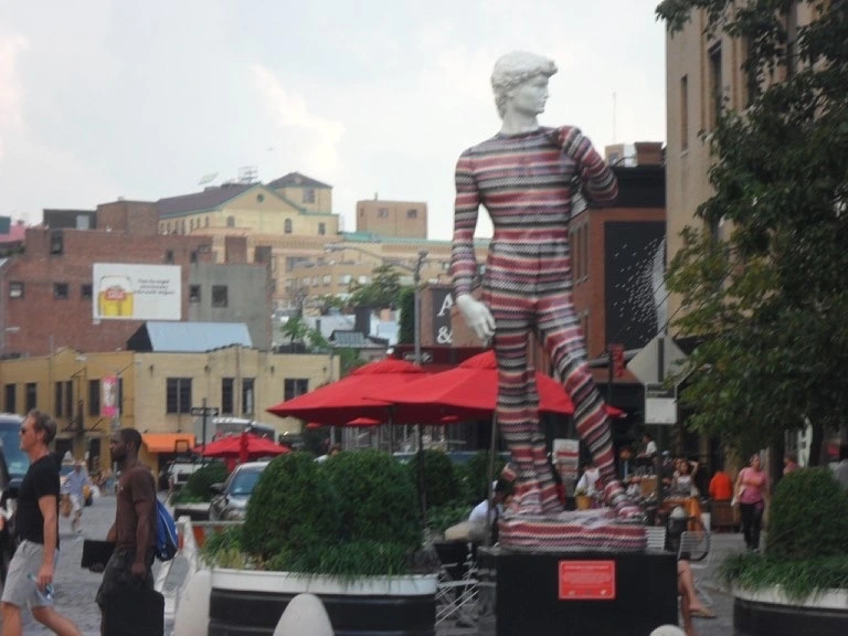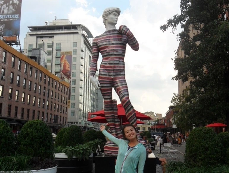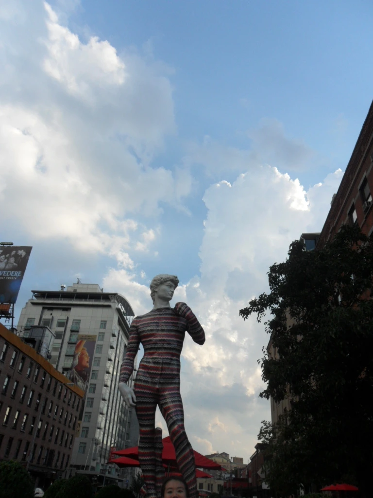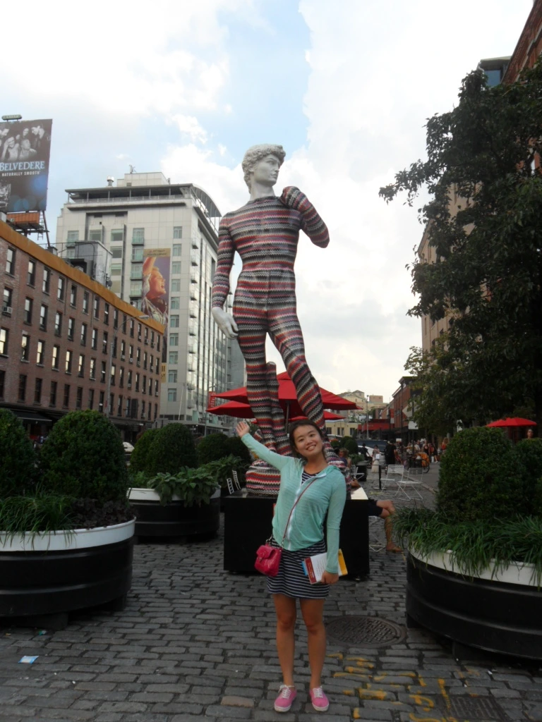 '가봐야지, 가봐야지'하고 점심시간에 점심을 먹고 잠깐 가보았다. 푸른 하늘과 알록달록한 건물의 무늬가 조화롭게 잘 어울렸다. 그런데 나는 왜 더현대 서울의 건물을 보면서 이전에 친구와 뉴욕 여행을 했을 때의 미트패킹 디스트릭트가 떠올랐을까. 아마 알록달록한 미트패킹 디스트릭트에 있는 동상의 모습과 더현대 서울 건물의 알록달록한 무늬가 내 머릿속에서 오버랩되어 더현대 서울 건물을 보고 있자니 자연스럽게 뉴욕 여행을 회상했던 것 같다. 이제 곧 10년이 되어가는 뉴욕 여행인데 말이다. 마침 여의도에서 근무하고 있는 친구가 함께 뉴욕 여행을 다녀왔던 친구였다. 그 친구에게 더현대 서울을 보고 있자니 우리가 뉴욕을 여행했을 때가 떠오른다고 했다. 코로나로 인해 여행을 못 가는 우리는 그때의 추억을 떠올리며 이야기를 하면서 추억여행을 즐겼다.