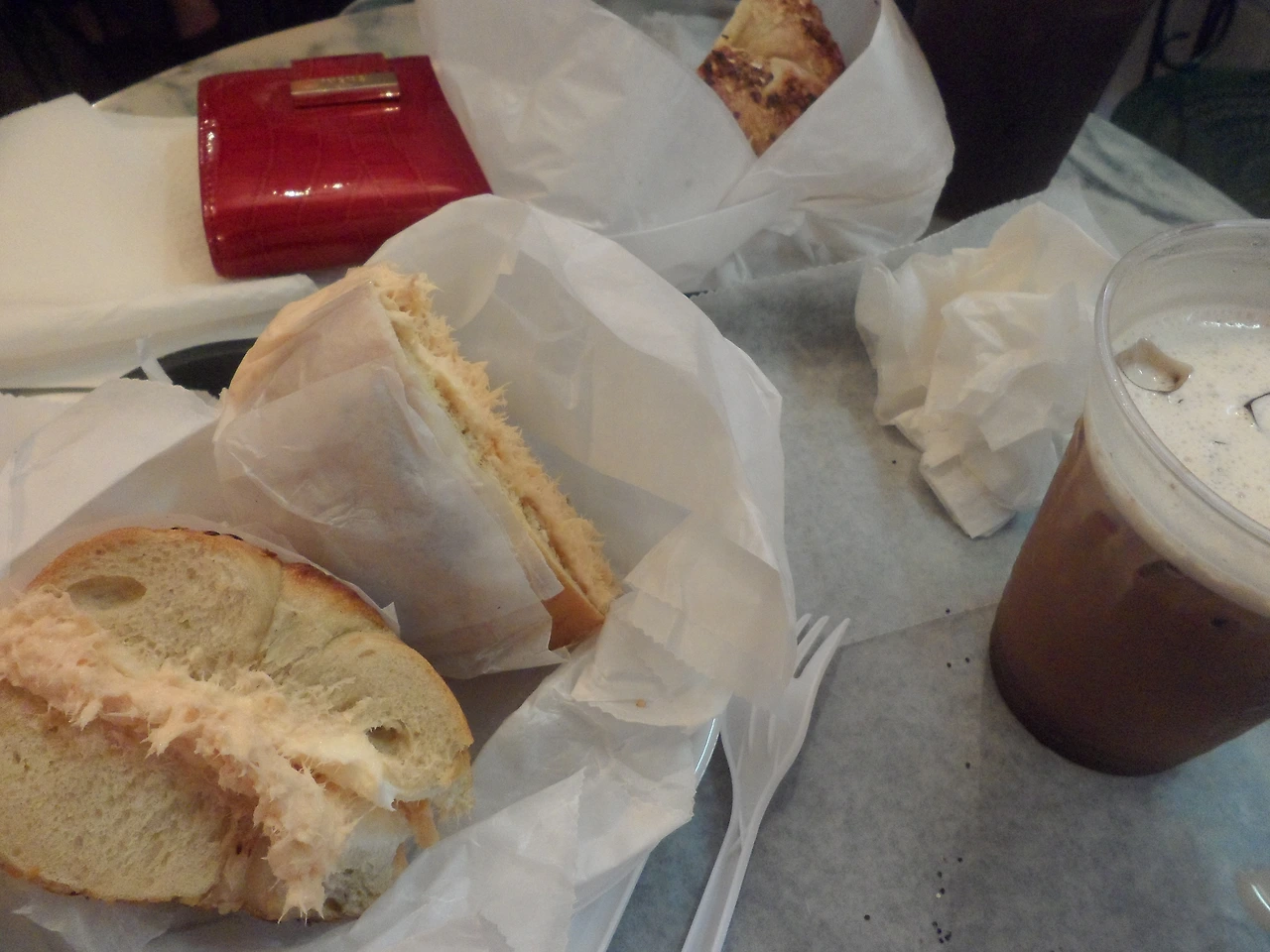 근무지 근처에 베이글 전문 가게가 있었다. '언제 한번 가봐야지'하고 호시탐탐 기회만 노렸다가 마침 일찍 끝났던 날, 퇴근길에 들러서 포장을 해왔다. 내가 주문했던 베이글은 그라브락스 샌드위치. 재료에 절인 연어와 크림치즈, 토마토, 루꼴라 채소 등이 들어있었다. 먹기 전에 비주얼을 보았을 때는 뉴욕 여행을 갔을 때 먹었던 에사베이글이라는 곳의 연어 베이글을 먹었을 때가 떠올랐다. 들어간 재료나 비주얼이 딱히 비슷했던 건 아니었으나 먹으면서 여행했을 때의 느낌, 뉴욕에 대한 그리움, 거기서 만났던 사람들이 떠올랐었다.