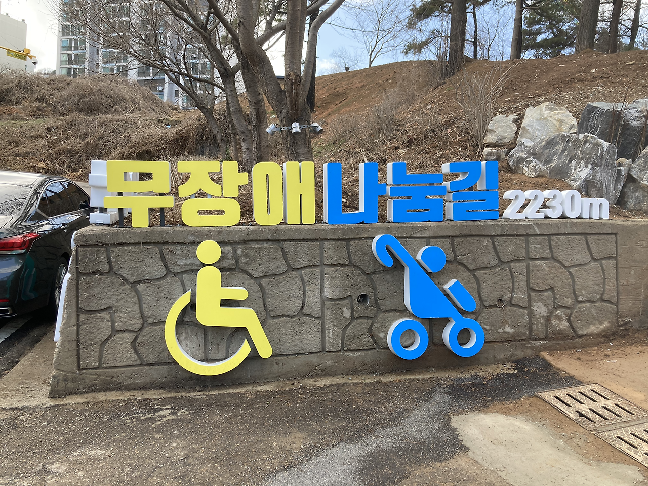 무장애 나눔길은 노약자, 영유아, 임산부, 장애인들이 제약 없이 좀 더 편하게 걸을 수 있길 바라는 마음에서 생겨났다고 들었다. 내가 살고 있는 인천 남동구에는 3개의 무장애 나눔길이 있다고 들었다. 늘솔길편백나무숲무장애 나눔길, 장아산 무장애 나눔길, 그리고 이곳 만수산. 작년 12월에 생겼다고 들었는데 동네에 살면서 이런 길이 있는 줄은 전혀 몰랐었다. 이런 길이라면, 만 2살인 우리 아이도 가는데 문제없다는 건데 그렇잖아도 엄마가 아이를 데리고 이 길을 한번 가보는 게 어떠냐고 하셔서 날씨 좋았던 주말 오후에 이 길을 나섰다.