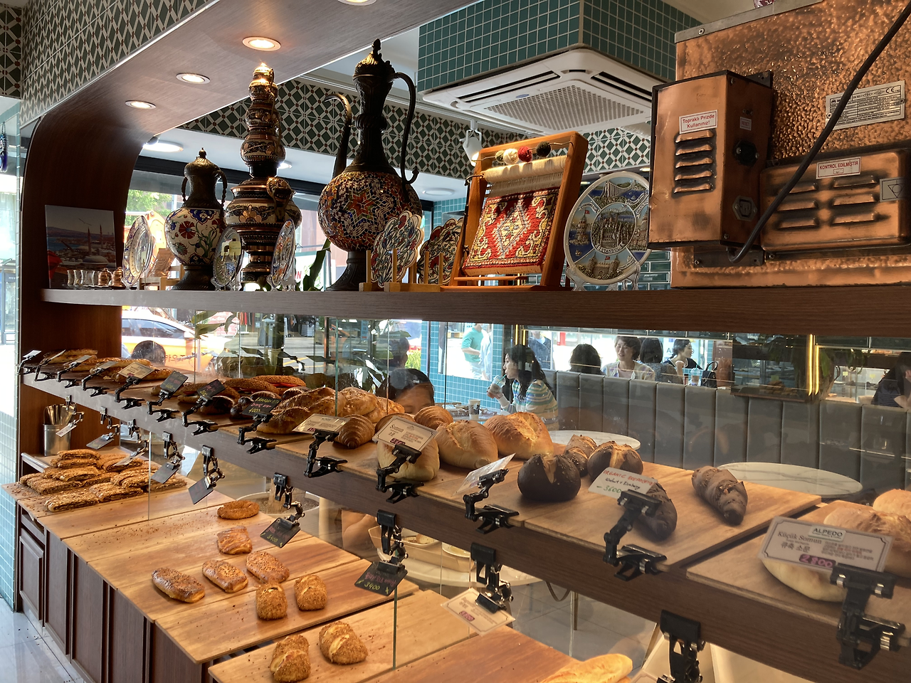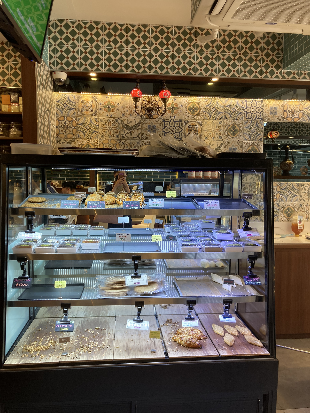 이태원역 4번 출구로 나오면 바로 보이는 곳이다. 그도 그렇듯이 유 퀴즈 온 더 블록이라는 TV 프로그램에서 유재석과 조세호가 이곳을 방문했던 듯 입간판을 확인할 수 있었다. 카페에 들어서면 터키를 상징하는 듯 내부 벽면의 문양과 도자기들이 여기저기 배치해 있었다. 빵의 쇼케이스 냉장고를 확인해보면, 이른 시간에도 품절된 빵이 많아 이곳의 인기를 실감했다. 맛있어 보이는 빵들이 많았지만, 나의 오늘의 목적은 카이막 이었기에, 다른 빵들은 추후에 맛보기로 하고 카이막을 주문하러 갔다. 종업원들은 한국어가 서툴렀다. 물어보진 않았지만, 아마 현지인들이 운영하는 것 같았다. 주문을 하고 테이블에 앉아서 주변을 둘러보니 카이막과 커피를 먹으로 온 테이블이 많았다. 아마 방송의 힘이겠지. 천상의 맛이라 극찬을 받은 카이막의 실물을 영접한 순간 맛이 없을 수가 없다고 생각했다. 순백색의 하얀 우유 크림과 꿀의 조합은 말모였다. 먹다 보니 빵에 비해 우유 크림과 꿀이 너무 적었던 게 아쉬웠다. 터키 커피도 메뉴에 있었는데 어떤 맛일까 궁금했다. ‘일반적으로 마시는 아메리카노와는 다르겠지?’라는 궁금증을 품고 추후에 재방문을 하기 위해 아껴두었다. 다음에 재방문 시에는 터키 커피를 음미하면서 카이막을 맛볼 참이다. 다른 맛있어 보였던 베이커리들도 함께.
