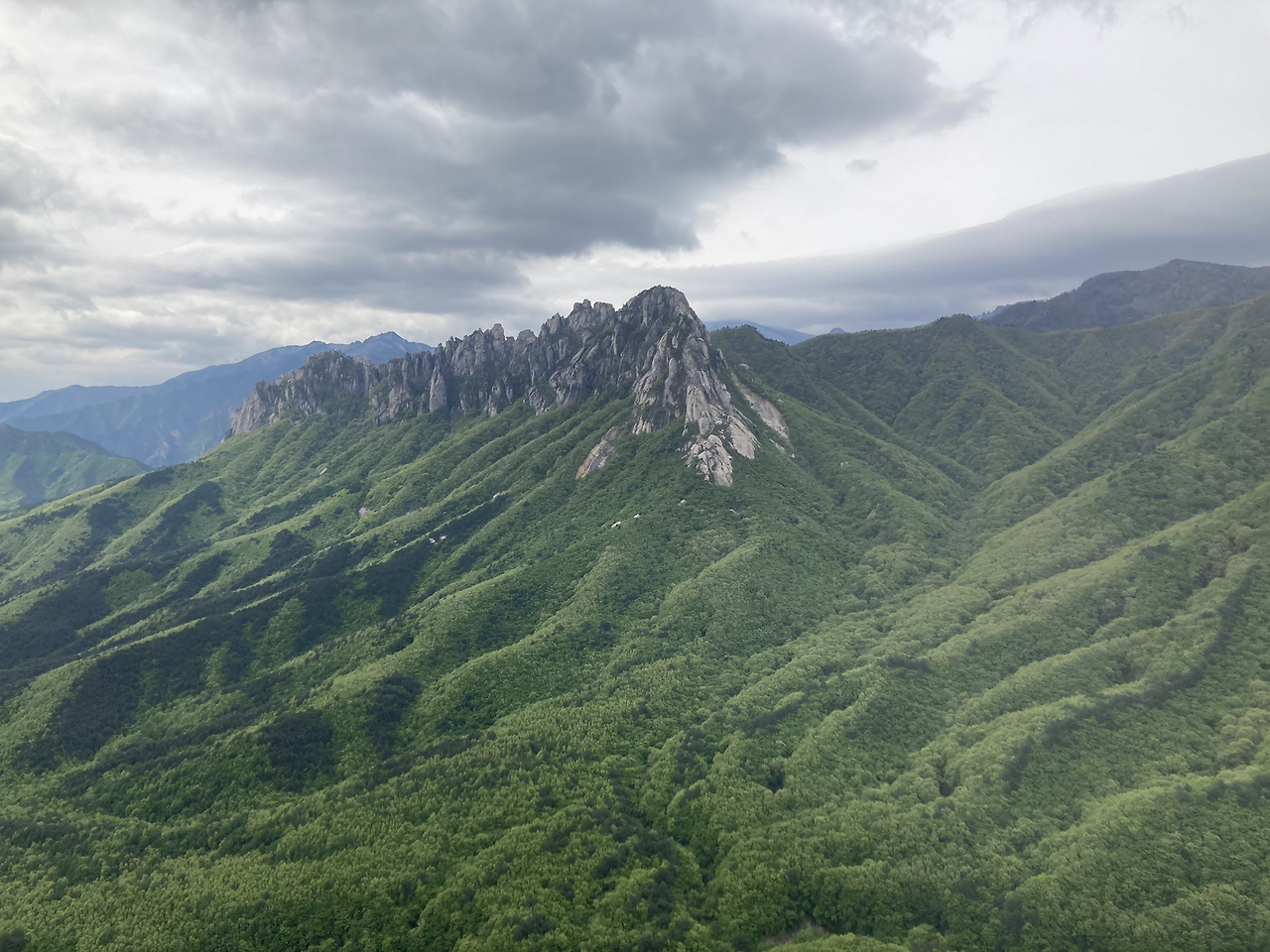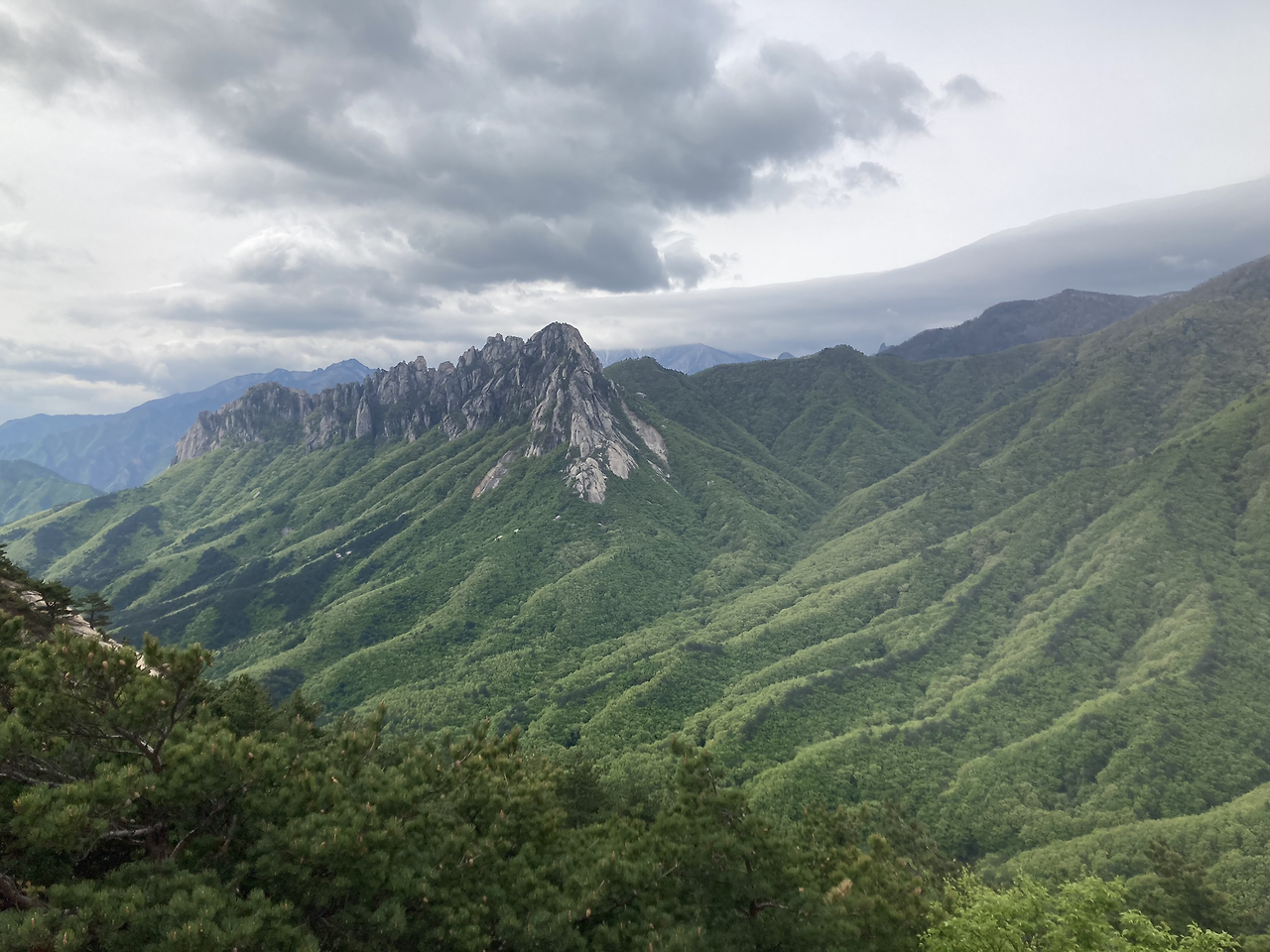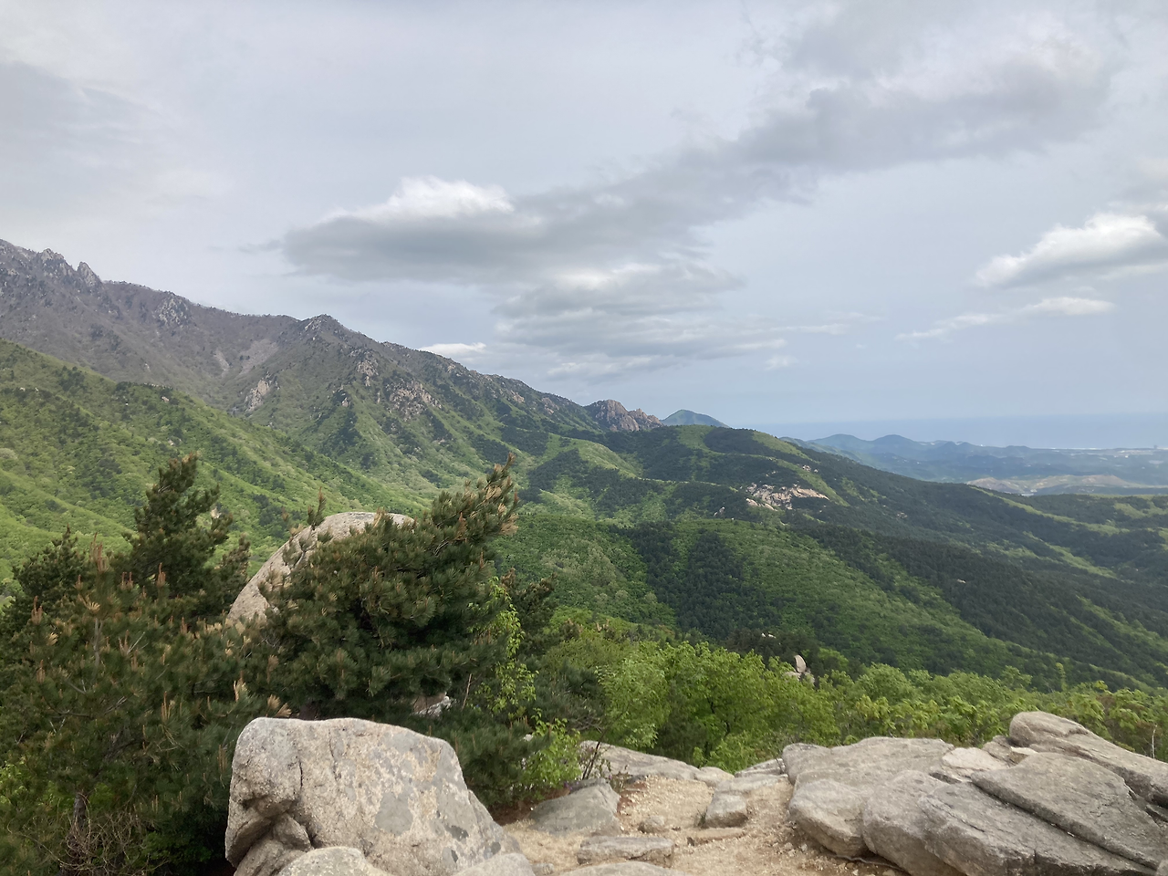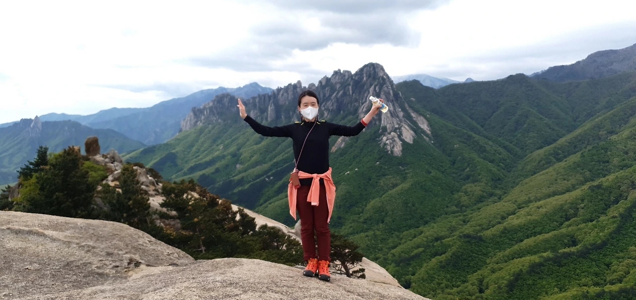 마침내 목적지인 성인대에 다다랐다. 그런데 울산바위가 어디 갔는지 보이지 않았다. 어디로 가야 보이는 건지 주변을 두리번거리고 있었는데 팀장님이 다른 쪽으로 가셔서 따라갔더니 정말 말로만 듣던 장관이 펼쳐졌다. 입이 떡 벌어지고, "너무 좋다"는 감탄이 절로 나왔다. 아마 요 근래 봤던 풍경중 가장 멋진 풍경이 아니었을까 했다. 이전에 엄마와 함께 노르웨이 3대 트레킹을 했을 때가 생각나기도 했다. 그렇게 입이 떡 벌어지는 풍경을 충분히 만끽한 후 하산까지 무사히 마쳤다.