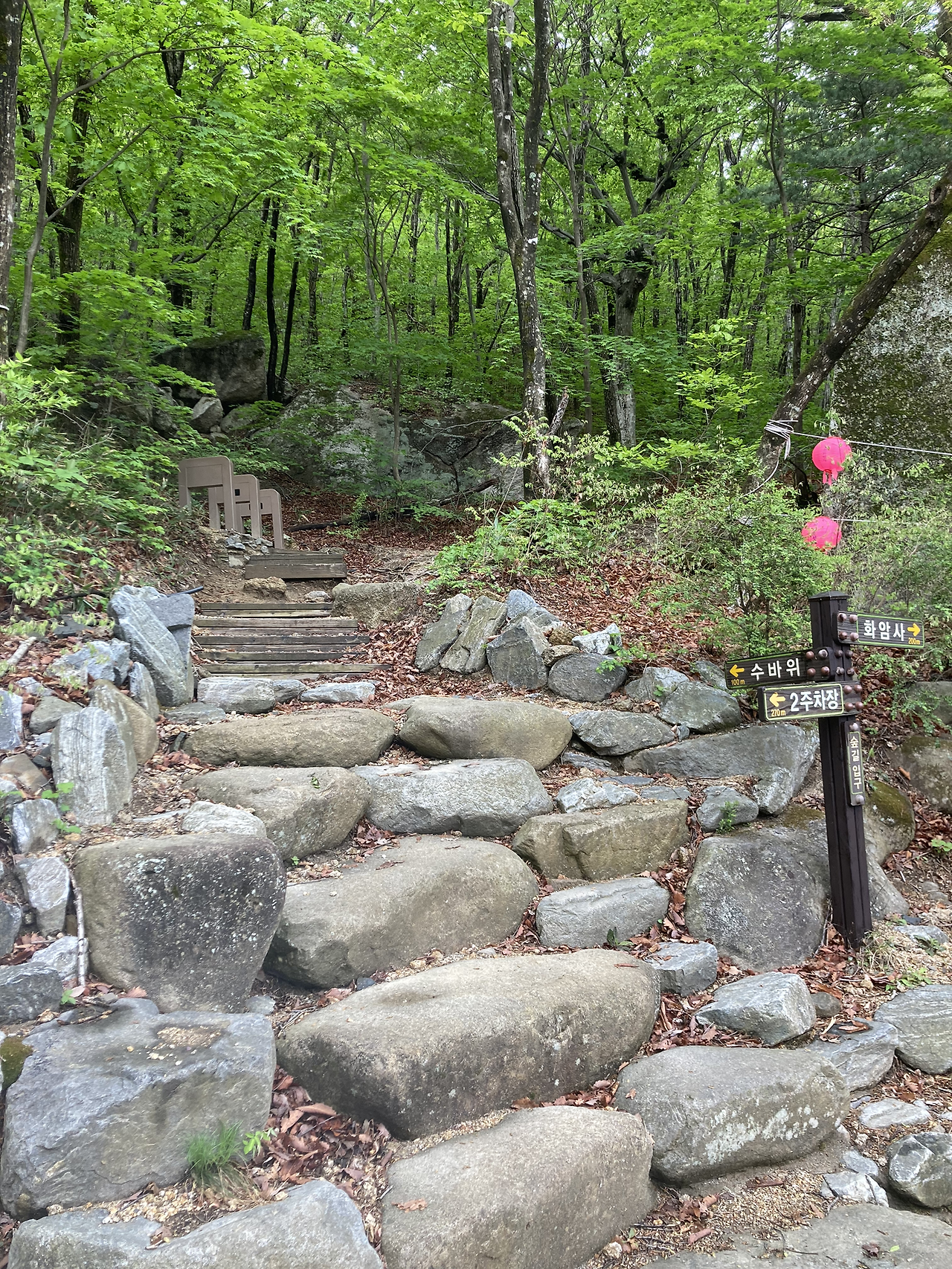 팀장님께서 성인대에 오르면, 울산바위가 보이는데 그 풍경이 장관이라고 하셨다. 그 풍경을 보기 위해 젊은 피였던 나는 앞장서서 올랐다. 성인대까지 올라가는 데는 등산보다는 트레킹 수준으로 무리가 없었다. 산을 오르면서 중간중간 연출되는 풍경들을 보면서 가니 오랜만에 산림욕 하는 것 같았고 힐링이 되는 것 같았다.