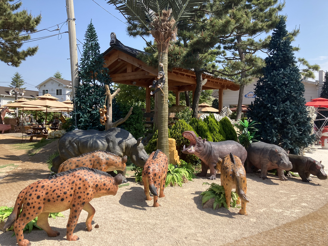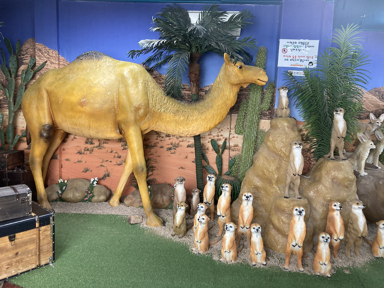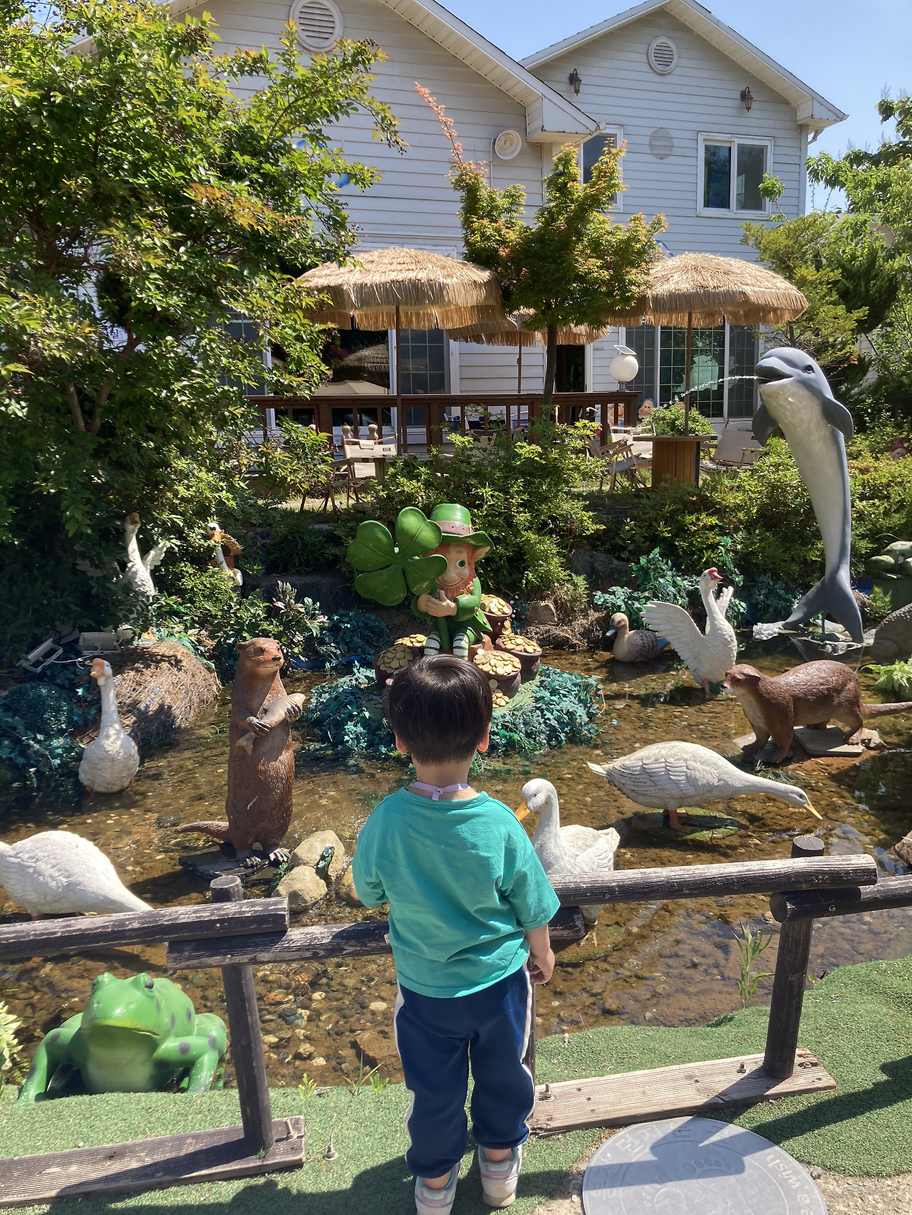 사파리 차와 사자, 기린, 코끼리, 얼룩말 등의 모형이 있던 사파리존, 캥거루 모형이 있던 호주 존, 사막여우, 낙타 등의 모형이 있던 사막 존, 물고기, 거북이, 인어공주 등의 모형이 있던 해저 존, 백설공주, 난쟁이 등의 모형이 있던 백설공주 존, 엘사와 울라프 등의 모형이 있던 겨울왕국 존, 무당벌레 모형이 있던 곤충 존 등 총 7개-8개의 존이 각각 있었고, 특히나 캥거루 모형이 있던 호주 존에서는 캥거루와 복싱할 수 있도록 해 놓은 포토존도 있어 엄마인 내가 더 즐거워했었다. 이외에도 야외에 바비큐 모형을 통해 캠핑 분위기의 공간도 있었고, 젖소 모형으로 젖 짜기 체험을 할 수 있는 공간도 마련되어있었다. 우리 아들 녀석에게 젖 짜기 체험을 같이 해보자고 하니 아직은 모르는 듯했다. 역시나 물을 좋아하는 우리 아들 녀석은 개구리, 수달, 돌고래 등의 모형이 있던 연못으로 가장 먼저 뛰어갔다. 한참 연못에서 돌고래, 코끼리가 물 뿜는 모습을 지켜보다가 다른 공간들로 이동했다. 역시나 적응에 시간이 필요했던 것 같았다. 시간이 갈수록 에너자이저인 우리 아들 녀석 조차도 지치고, 힘들었었나 보다. 좀처럼 어딜 놀러 가도 물이나 음료수를 잘 마시지 않았던 녀석이었는데 입장료 대신 구입한 보리차 음료수를 어느새 한 통을 다 마셨다. 얼굴도 불그스레 해졌던 게 확실히 이제 야외 활동을 할 수 있는 날이 얼마 남지 않았다는 것이 실감이 났었다. 더 더워지기 전에 부지런히 아들 녀석 많이 데리고 놀러 다녀야겠다.