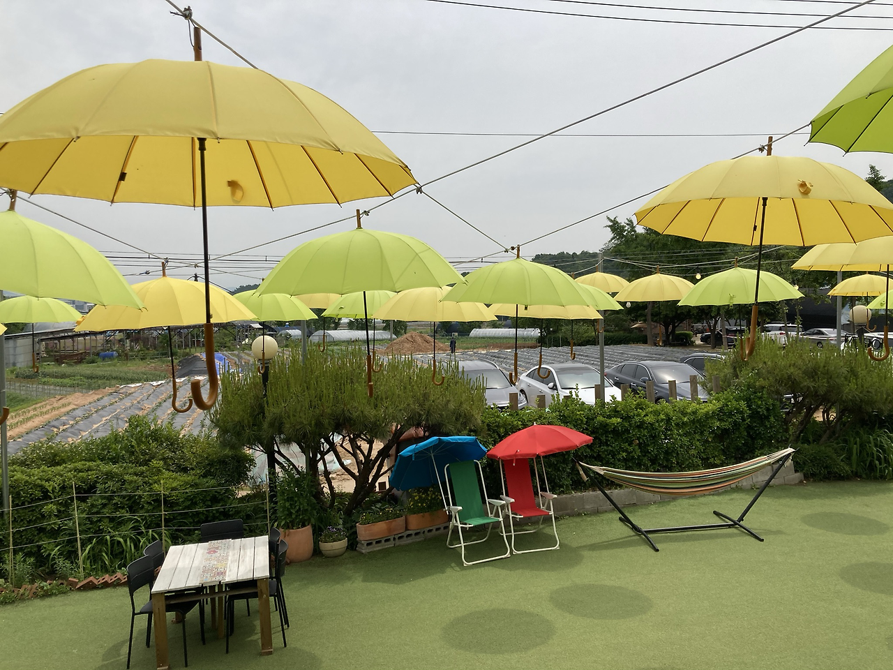 집 근처에 있는 반디 세상이라는 야외 놀이터 카페를 알기 전, 인천 계양에 있는 모모 아트라는 야외 놀이터 카페를 더 먼저 알았어서 그곳을 먼저 찾았었다. 나름 서두른다고 서둘렀었는데 정말 아이 있는 엄마들은 빛의 속도로 빠른 것 같다. '우리가 빨리 온 편에 속하겠지?'라는 나의 생각은 도착해서 보니 참 오만한 생각이었다. 주차하고 카페 안을 들어갔을 때는 줄을 지어 서있었고, 겨우 들어간 카페에서는 자리를 잡기조차 힘들 정도로 사람들이 많았었다. 참 부지런하기도 해라.