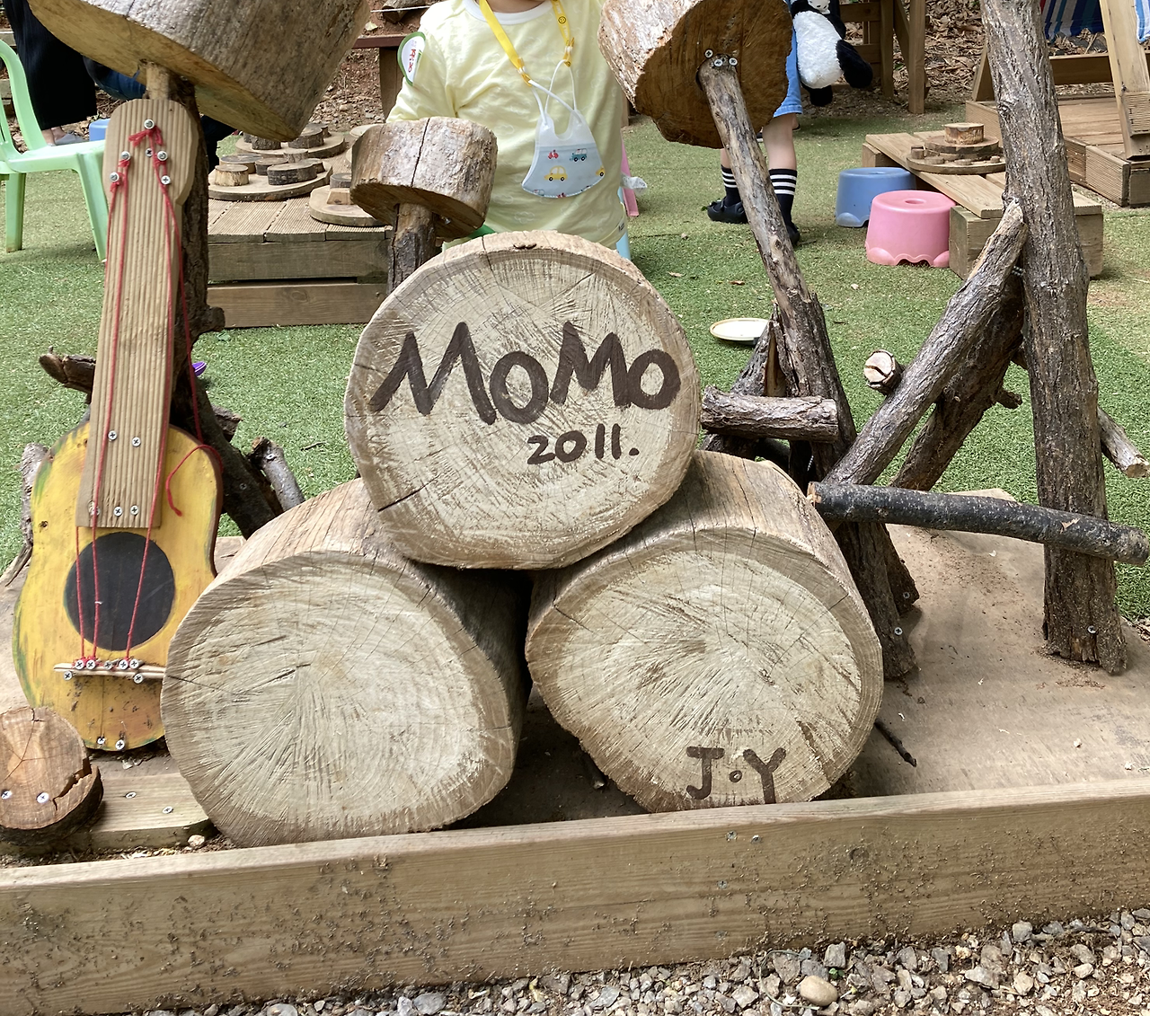 이곳은 반디 세상 카페와는 다르게 카페에 들어가기 위해 입장료를 지불해야 했다. 1인당 8천 원. 아이도 음료를 무조건 주문해야 했는데, 음료수를 입에 대지 않는 아들에게 무슨 음료를 주문해주랴. 고심이 많았다. 그래도 이때는 우유를 마실 때였기에, 우유를 주문해주었다. 카페는 참 아기자기하게 꾸며 놓았었고, 모모 아트라는 이름답게 미술 체험이나 도자기 같은 것들이 많이 있었다. 아이들을 데리고 가족 단위로 온 사람들이 많았지만, 카페 곳곳에 포토존이 많아 커플끼리만 와도 손색이 없을 정도로 예쁘게 카페가 꾸며져 있었다. 나무로 된 장난감들이 많이 있었다. 특히나 우리 아들 녀석은 나무 악기에 관심이 많았는데 드럼 앞에 앉아 두드려보기도 하면서 온몸으로 자연을 느꼈다. 고리를 끼우기보다는 들고 뛰어다니는데 더 관심이 많았던 아들 녀석. 카페 곳곳에 모래 놀이, 그네, 소꿉놀이 등도 있었는데 아직은 이 같은 장난감에는 관심이 없었다. 오로지 흙에서 걸어 다니고 뛰어다니며 탐색하던 아들 녀석. 이것만 해도 어디야. 아이들이 걸어 다니는 곳에는 깔개를 깔아 놓아 안전하게 놀 수 있었다. 계속 뛰어놀아서 배가 고팠는지, 마침 점심시간이었다. 출출했던 때에 카페에서 음식을 주문해서 먹었다. 원래는 아이에게 카페 음식을 줄 생각이 없었는데 한번 먹여봤더니 아이가 너무 잘 먹는 것이 아니겠는가. 결국 아이를 위해 싸갔던 도시락은 먹지 않았고, 그대로 집으로 가져왔다. 세속적인 맛에 길들여진 것은 아닐까 걱정이 됐던 때 결과적으로는 딱히 그렇지는 않았다. 한참을 뛰어다니면서 놀다가 집에 돌아오는 길에 피곤했는지 곯아떨어졌던 아들 녀석이었다.