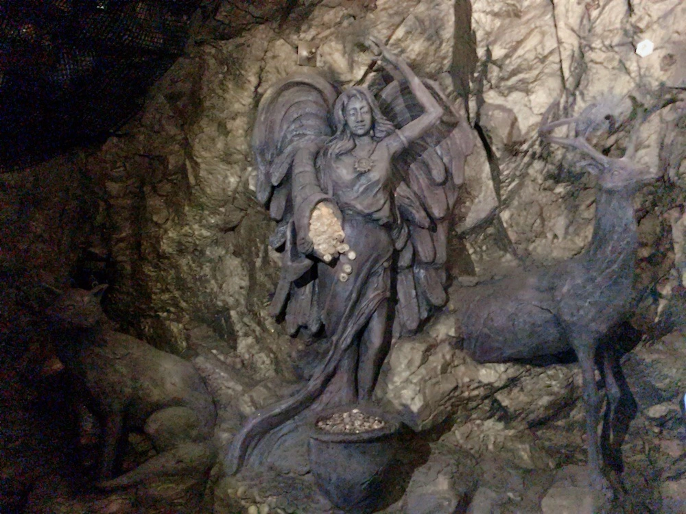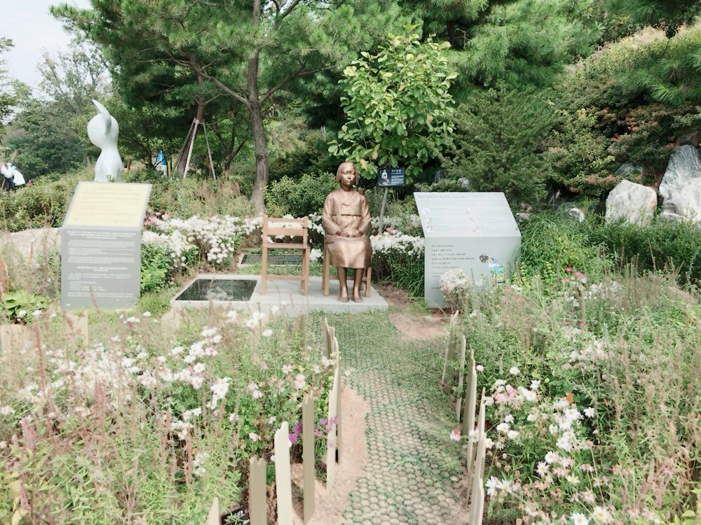 실제로 나도 광명 동굴을 가보기 전, 사람들의 이야기를 듣고, 사진만 먼저 봤을 때는 '이곳 참 조명이 예쁘다, 동굴을 놀러 가면 시원하겠지?' 이런 막연한 생각만 가지고 있었다. 물론 동굴을 들어가서 봤을 때 에어컨 바람보다 더 시원했다. 조금 과장을 보태서 에어컨이 필요가 없을 정도였다. 역시 "기계는 자연을 따라오지 못하고, 자연의 힘은 위대하다"라는 걸 느꼈다. 동굴 안의 조명을 예쁘고 화려하게 꾸며 놓아서 눈을 어디에 둬야 할지 모를 정도로 눈이 즐거웠고, 구경거리가 참 많았었다. 특히 나는 와인을 마셨을 때 좋은 기억이 없어서 와인을 그다지 좋아하지 않는데 광명 동굴에서 시음했던 와인은 주황색 빛깔의 로즈와인은 정말 달콤했어서 '사람들이 아 이래서 와인을 마시는구나!'를 느꼈다. 주변 지인들이 내가 와인이 맛이 없다고 할 때마다 "네가 아직 진정한 와인을 마셔보지 못해서 그렇다"라고 하였는데 그 말을 이제야 알 것 같았다. 이런 즐거운 구경도 좋았지만, 이면에는 내가 몰랐던 위에 언급한 역사적 아픔들도 동굴 곳곳에서 발견할 수 있었던 뜻깊은 하루였다. 동굴에서 나왔을 때 입구에 위안부 할머니들을 기리는 평화의 소녀상이 자리 잡고 있었다. 잠시 평화의 소녀상을 바라보며, 광명 동굴에서의 일제 강점기의 역사적 아픔을 다시금 돌아봤다.
