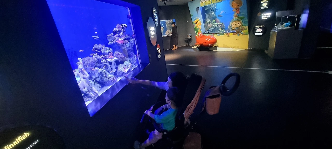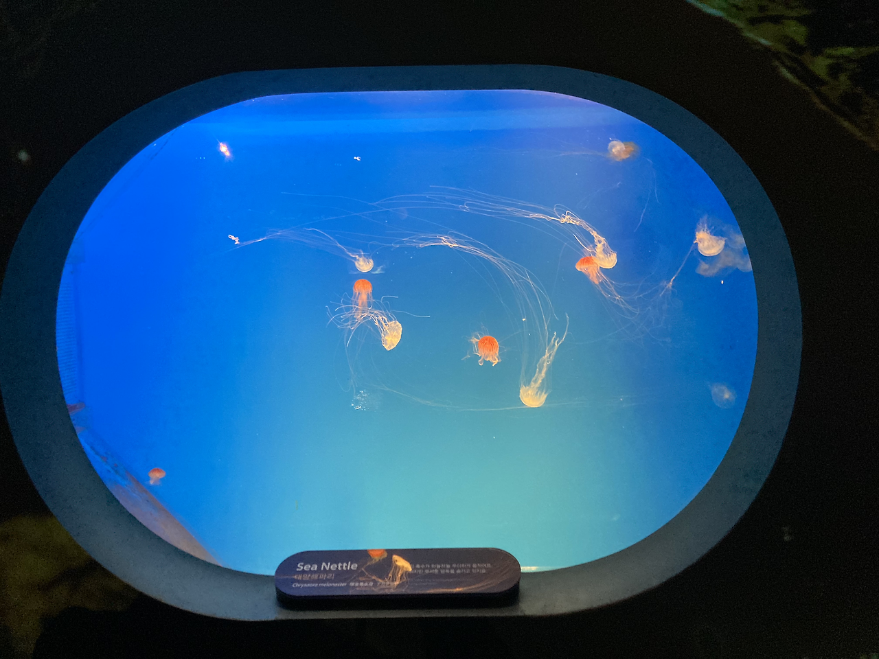 코스가 짧다고 느껴졌었지만, 처음 아쿠아리움을 방문했던 우리 아이에게는 딱 안성맞춤이었다. 아이는 큰 물고기보다는 작고 아기자기한 물고기들을 더 좋아하고 신기해하는 모습이었는데, 이건 아마 아이 눈에는 작고 아기자기했던 물고기조차 크게 보여서 그랬을 거란 생각이 들었다. 몰랐었는데, 집에서 가까운 인천에도 아쿠아리움이 있다고 들었다. 다음에는 아이와 함께 그곳을 데려가 볼 참이다. 아이는 여전히 물을 좋아하고, 화장실을 들어가면, 커튼에 있는 물고기 그림을 만지작 거린다. 다음에 아쿠아리움을 가게 되면, 처음보다 더더 좋아하겠지?