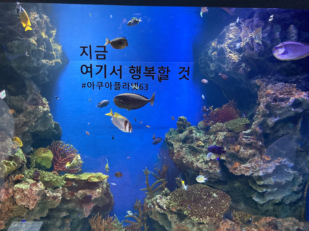 우리 집 화장실 커튼에는 물고기 그림이 그려져 있다. 아이가 세수를 하기 위해 화장실을 들어갔는데, 어느 순간부터 커튼에 있는 물고기 그림으로 달려가는 것이 아니겠는가. 그러면서 물고기 그림 커튼을 만지작 거렸었다. 얼마 전 어린이집에서 블루데이라고 해서 바닷가처럼 어린이집을 꾸며 놓고, 물고기 인형과 풍선을 가지고 놀게 했다고 하셨었는데. 그 영향이었을까. 다양한 종류의 물고기를 아이에게 보여주고 싶었다. 머릿속에 딱 떠오른 곳은 바로 아쿠아리움(수족관)이었다. 워낙 물을 좋아하는 아이. 남편에게 아들 녀석을 수족관에 데려가 보자고 이야기를 했다. 인터넷으로 집에서 제일 가까운 아쿠아리움을 찾아보니 여의도 63 빌딩에 있는 63 아쿠아리움이었다. 검색해보니 3세 미만의 아이는 무료였다. 아직 33개월인 우리 아들에게 제격이었다. '좋아할까?'라는 기대감으로 예약을 마쳤고, 설레는 마음으로 다음날 아침 일찍 출발을 했다.