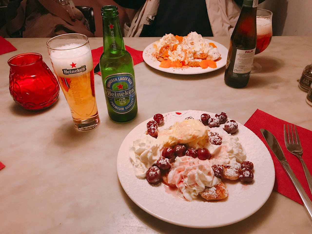 네덜란드 암스테르담을 떠나기 전 우린 로컬푸드는 먹고 가야 되는 것 아니냐는데 의견을 모았다. 그래서 네덜란드의 국민 간식이라고 정평이 나있는 포퍼처스를 맛보지 않을 수 없었다. 남편과 포퍼처스 레스토랑을 찾아 포퍼처스를 먹으러 갔었다. 쫀득쫀득 미니 팬케이크 같은 맛이었는데 여러 가지 맛이 있었지만 나는 와인에 졸인 베리류의 포퍼처스를 먹었다. 술이 약한 나는 약간 알딸딸한 술기운이 느껴지기도 했었다. 행복했다. 많이 걷는 걸 좋아하지 않는 남편으로선 마지막 암스테르담에서의 일정을 만족해했었다.