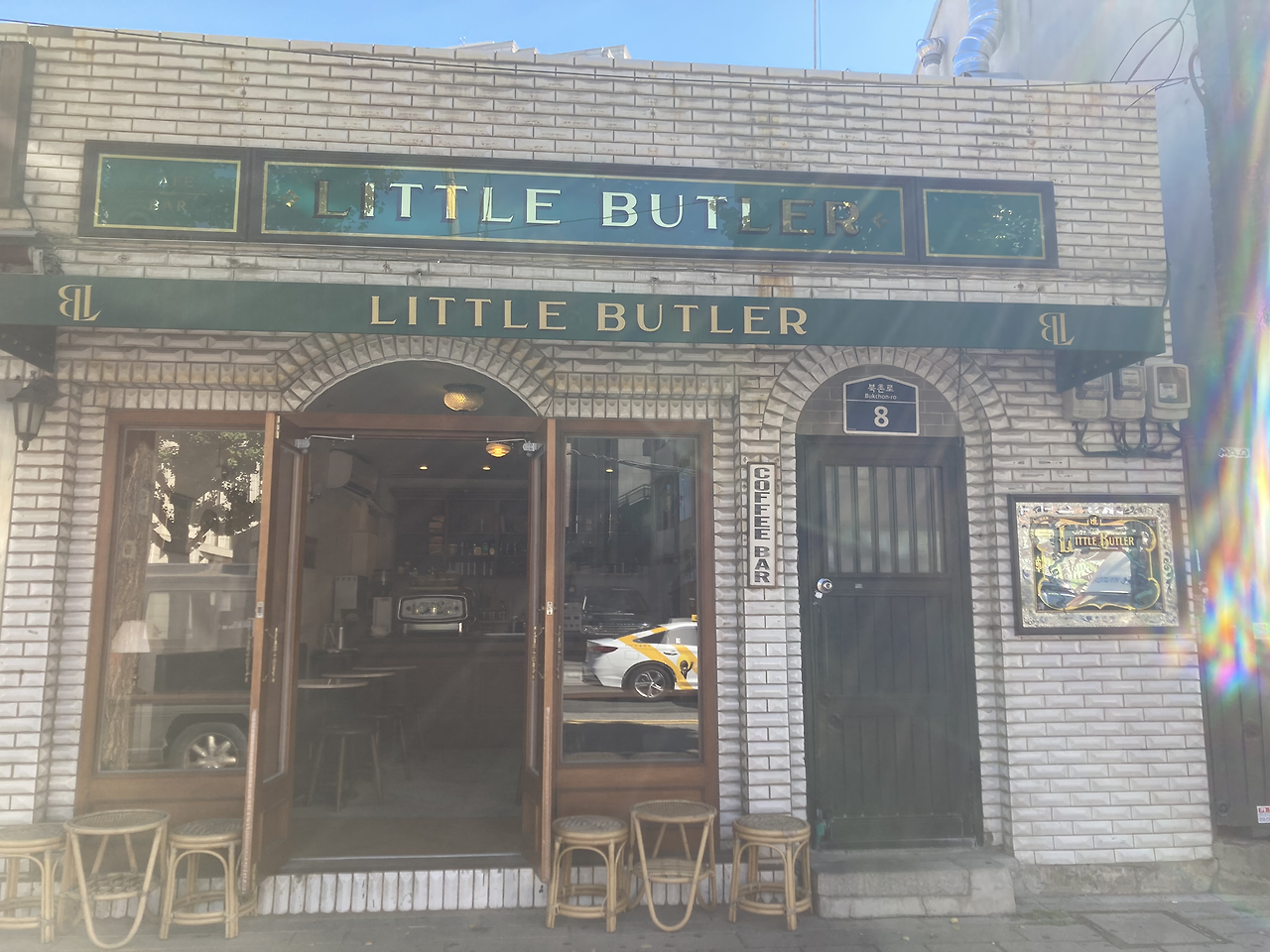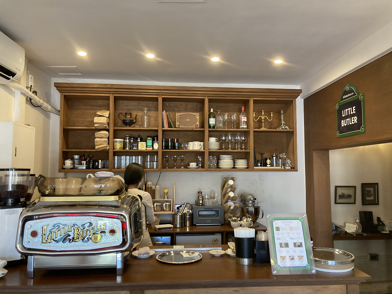 과연 직접 보니 역시나 외관도 그렇고 인테리어도 그렇고 앤티크 한 디자인이 내 눈길을 사로잡았다. 어쩔 수 없이 시간차를 두고 같은 날 방문했기에 런던 베이글 뮤지엄과 비교를 하게 됐는데 카페의 내부 공간은 많이 협소했다. 음악은 조용했다. 무얼 마실지 고민하다가 시그니처 메뉴인 버틀러 슈페너를 주문했다. 커피는 원래 가려했던 다음 행선지 카페인 논 탄토에서 모래 커피를 마셔볼 예정이었기에 마침 디카페인 원두도 있겠다, 디카페인으로 버틀러 슈페너가 가능한지 물어봤었고 가능하다는 답변을 듣고 디카페인으로 주문을 했다. 버틀러 슈페너 라. 이름만 들었을 때는 카페의 이름인 리틀 버틀러의 버틀러와 아인슈페너의 슈페너의 합성어로서 아인슈페너를 이 카페만의 감성으로 표현하겠다는 자신감이 돋보였고, 이 메뉴는 먹어보면 당연히 맛있겠구나라는 예상을 했었다. 그리고 디저트를 안 먹어보고 가기엔 아쉬워서 이탈리아 전통 쿠키를 응용해서 만들었다는 이곳의 시그니처 디저트라는 리틀 핑거도 주문을 해서 먹었다. 단거 플러스 단거는 역시 맛이 없을 수 없는 조화였다. 주문한 메뉴가 나왔고 버틀러 슈페너라는 이곳만의 아인슈페너는 눈으로 보기만 해도 맛있어 보였다. 주로 아메리카노를 마시는 나는 아인슈페너를 많이 마셔보지 않았는데 한입 딱 마셔봤을 때 내가 마셔본 아인슈페너중에 가장 맛있었다고 자부할 수 있었다. 너무 맛있어서 나 혼자 있던 틈을 타 직원분께 몇 가지 질문을 드렸다.