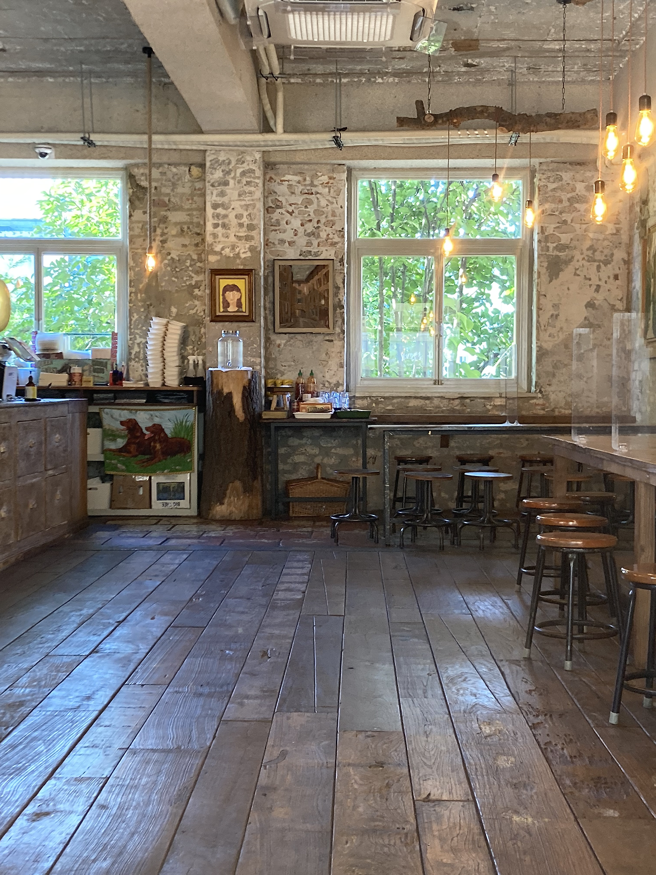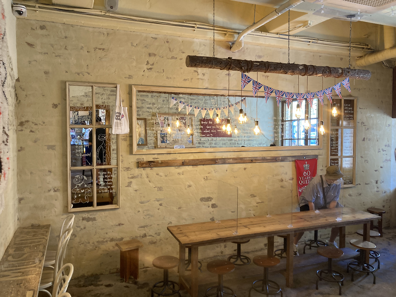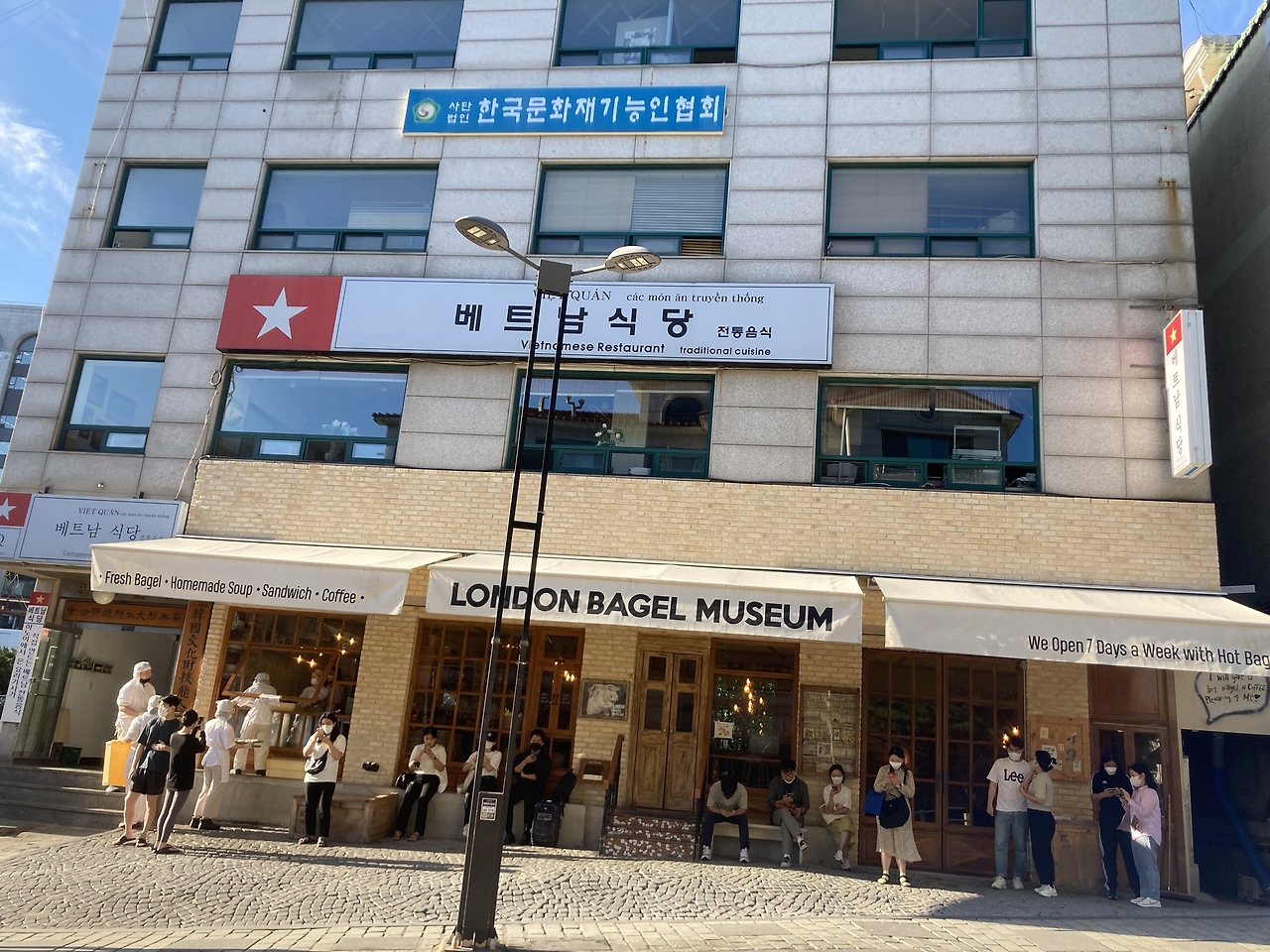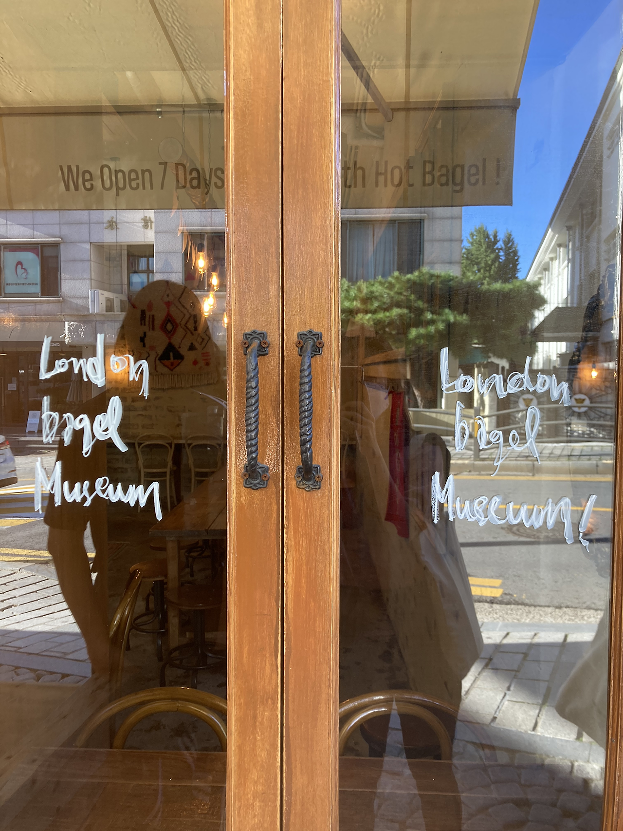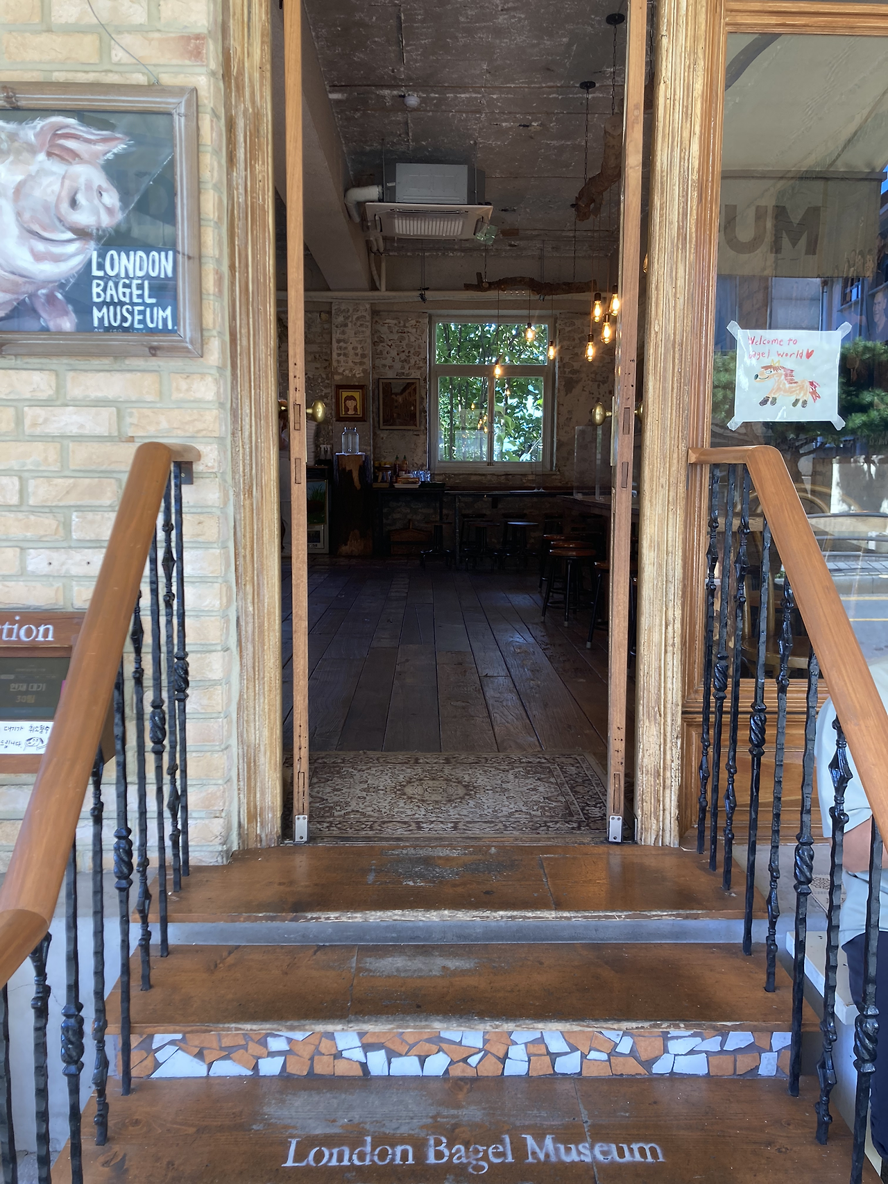 오래전부터 와보고 싶었던 카페였다. 베이글이 쫀득하고 전반적으로 맛있다는 평과 분위기가 좋아 보여 버킷리스트에 오랫동안 저장해두었던 곳이었는데 대기가 엄청 길다는 소식에 와볼 엄두를 내지 못했었다. 벼르고 벼르다 드디어 와보기로 결심하고 아침 일찍 서둘렀다. 오죽하면 출근하는 것보다 더 빨리 나왔으니 말 다했다. 그러나 사람들은 어찌나 부지런했는지 아침부터 서둘렀음에도 불구하고 내가 카페에 도착했을 때는 줄이 꽤 길었다. 멋모르고 줄만 서있다가 손해를 볼 수도 있겠다 싶어서 앞에 함께 대기하고 있던 사람에게 물었다. 그냥 물어보지 않고 서있었다면 역시 큰일 날뻔했었다. 대기 어플로 등록을 해야 했던 것. 앞사람의 도움으로 무사히 대기 어플로 등록을 마치고 편한 마음으로 기다릴 수 있었다. 어마어마한 대기줄을 마주하면서 또다시 와볼 수 있을까 하는 마음에 먹어보고 싶었던 베이글을 왕창 담았다. 덕분에 지갑은 텅 비었지만 베이글 부자가 됐었다. 가게 외관만 봐도 멋스러운 풍경. 영국 런던을 한 번도 가보지 않아 감히 비교할 순 없겠지만 런던의 노천카페에 앉아있는 듯한 느낌이 들게 했다. 약간의 기다림 끝에 드디어 내 차례가 되었고, 가게 내부로 들어가니 영국적인 요소들이 많이 보였다. 이 공간에서만큼은 런던이 생각나도록 꽤나 인테리어에 신경을 많이 쓴 느낌이었다.