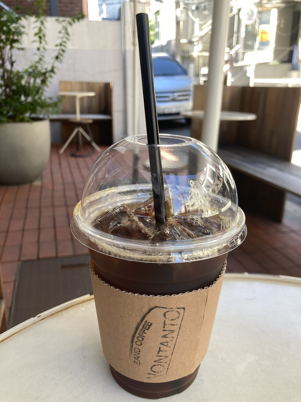 조금 기다리니 이윽고 시원한 아이스커피가 나왔다. 조금씩 저어서 마시라는 사장님 말씀에 저어서 맛을 봤다. 깔끔하고 시원하면서 상쾌함이 감도는 커피맛이 났다. 한적한 골목에 자리 잡고 앉아 살랑살랑 부는 바람을 느끼며 마시는 커피가 좋았다. 커피를 마시면서 은은하게 나는 커피 향이 좋았다.