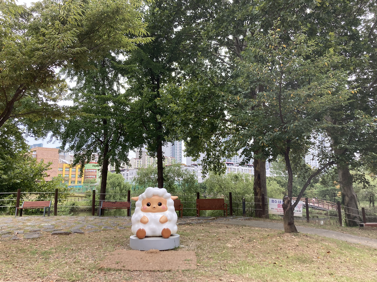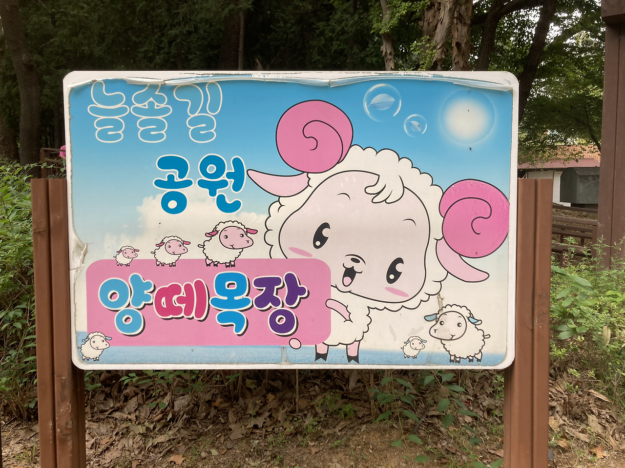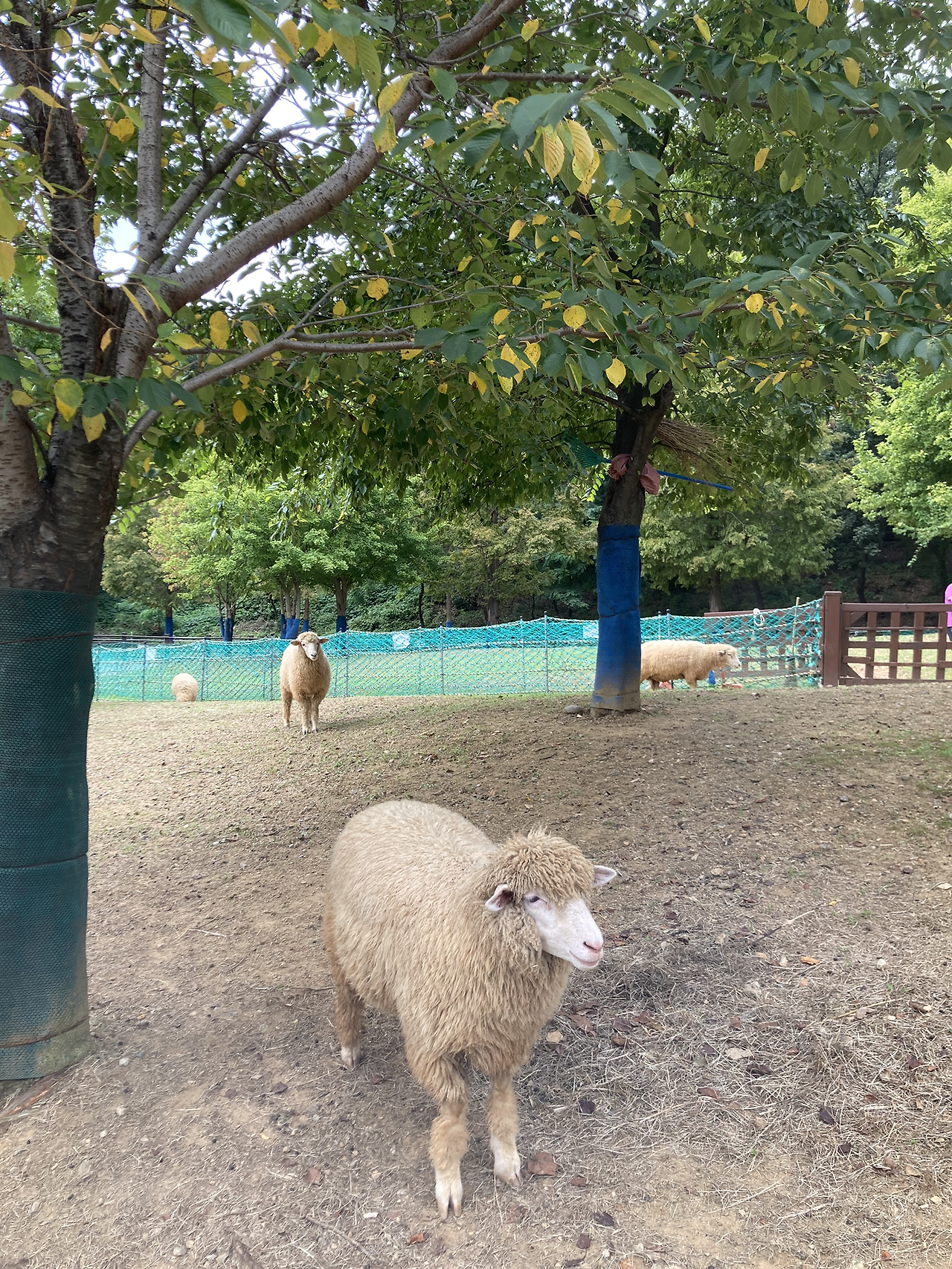 남편과 둘만의 추억에서 아이와 셋이 나눌 수 있는 추억이 되는 순간이었다. 그렇게 호기롭게 출발했던 첫 양 떼 목장 도전은 정부에서 대대적으로 시행했던 코로나바이러스의 거리두기 제한으로 인한 양 떼 목장의 폐장으로 아쉽게도 발길을 돌렸어야 했었다. 아이가 알든 모르든 아이에게 도시에서도 양을 볼 수 있다며 보여주고 싶었는데 안타까웠었다. 아쉬운 대로 양 떼 목장 옆에 있는 편백나무숲 무장애 나눔길과 공원의 호수 주변을 유모차 자전거를 끌고 산책하는 것으로 아쉬움을 달래고 돌아왔었다.