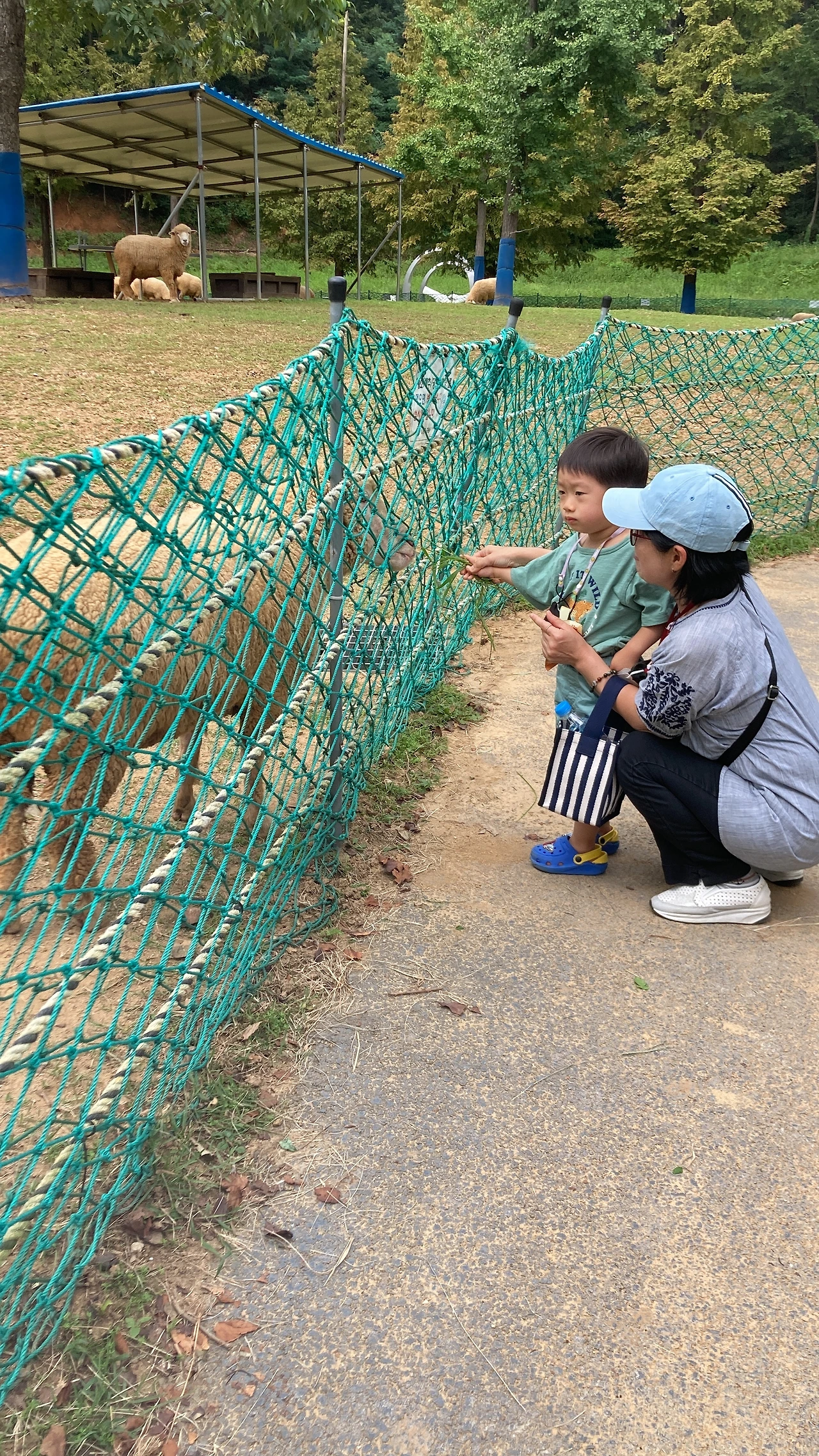 그런데 경험상 보면 아이와의 여행은 항상 그렇듯 모든 게 순조롭지만은 않더라. 나들이를 나와서 기분이 좋았던 아이는 양 떼 목장이 가까워올수록 자꾸 그곳을 벗어나려고 했었다. 아이가 마냥 좋아할 거란 생각은 내 욕심이었을까? 연휴를 맞아 친정식구들 총동원해서 갔던 양 떼 목장은 아빠와 삼촌이 양들에게 먹이 주느라 더 신이 났었다.