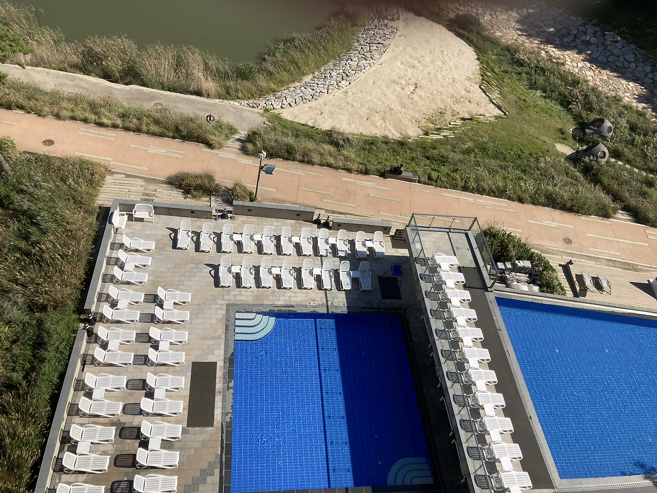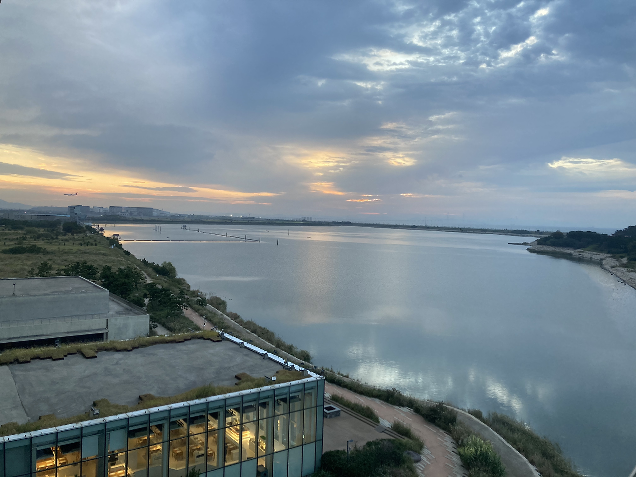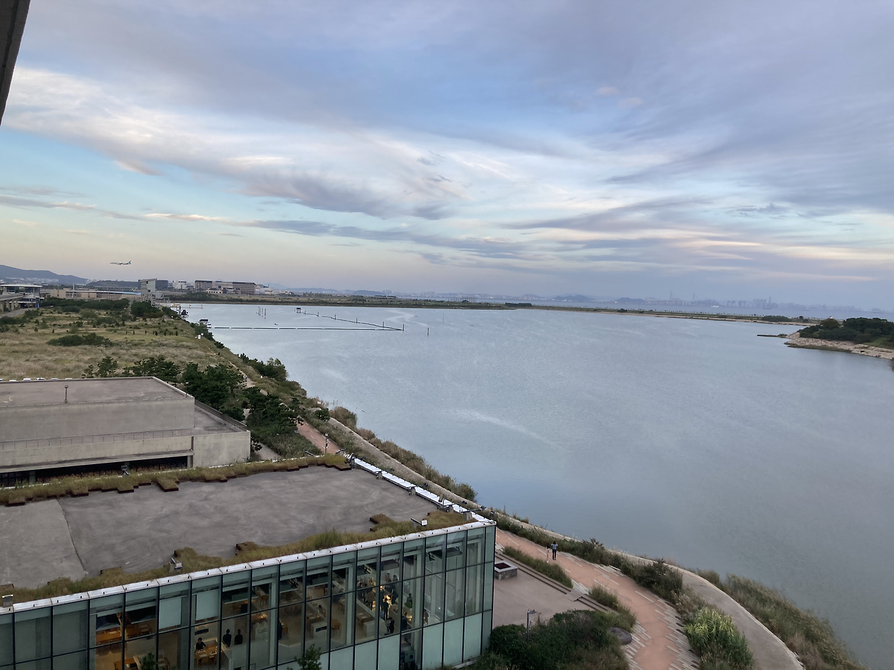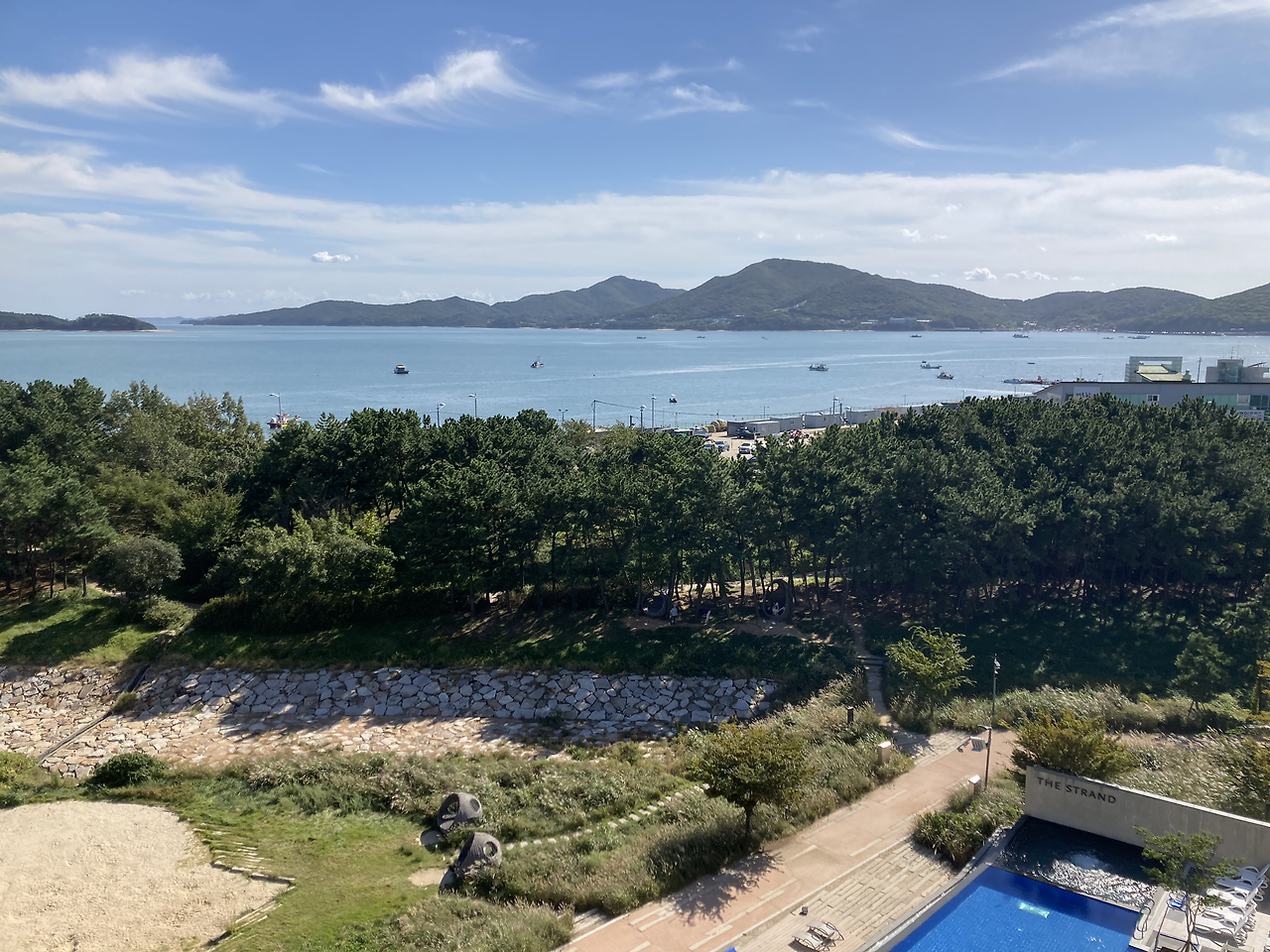 그래도 역시나 오션뷰는 오션뷰였다. 처음에 갔던 마운틴뷰가 만족스러웠었지만 그때는 오션뷰를 가보지 않았을 때의 이야기였다. 막상 오션뷰를 묵어보니 탁 트인 바다 뷰도 그렇고, 구름 사이로 지나다니는 비행기도 그렇고, 수영장 뷰와 바다 건너 보이는 인천대교 풍경까지. 멋진 경관을 연출했었다. 특히나 인천대교는 밤에 형형색색 바뀌는 불빛의 야경이 예쁘고 황홀해서 잠을 자는 대신 창문에 계속 붙어서 야경을 보고 싶을 정도였다. 많은 사람들이 왜 오션뷰를 좋아하는지, 그렇기에 마운틴뷰보다 가격이 더 비싼 이유에 대해서도 실제로 묵어보니 그 이유를 알겠더라. 이러한 수려한 경관 앞에 장사 없었다.