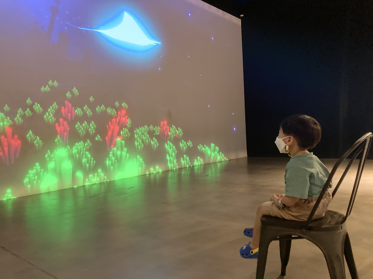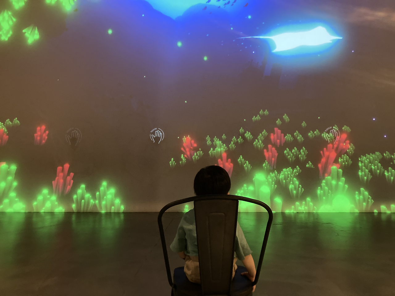 농구코트 맞은편에는 화면을 터치하면 그림 효과가 나오는 스크린이 있었는데 처음에 보여줬을 때는 겁을 냈었다. 가지 않으려고 했었다. 지난번에 63 빌딩 아쿠아리움에서도 다른 또래 친구들이 터치 스크린에 터치하며 재밌게 놀 때 스크린 근처에도 가지 못해 울면서 돌아섰던 뼈아팠던 기억이 있었다. 이번에도 역시 그때의 악몽이 되살아나는 듯했었다. 그러나 얌전히 의자에 앉아서 바뀌는 그림을 찬찬히 살폈던 아들 녀석. 터치스크린에 몇 번 같이 가서 스크린 터치 놀이를 같이 해줬더니 이윽고 깔깔거리며 혼자 스크린을 터치하며 놀았던 아들 녀석이었다. 터치스크린과 친해질 시간이 필요했었던 건데 내가 너무 조급하게 생각했었던 것 같았다. 그래도 터치스크린이 무서운 게 아니란 걸 알고 와서 다행이었다