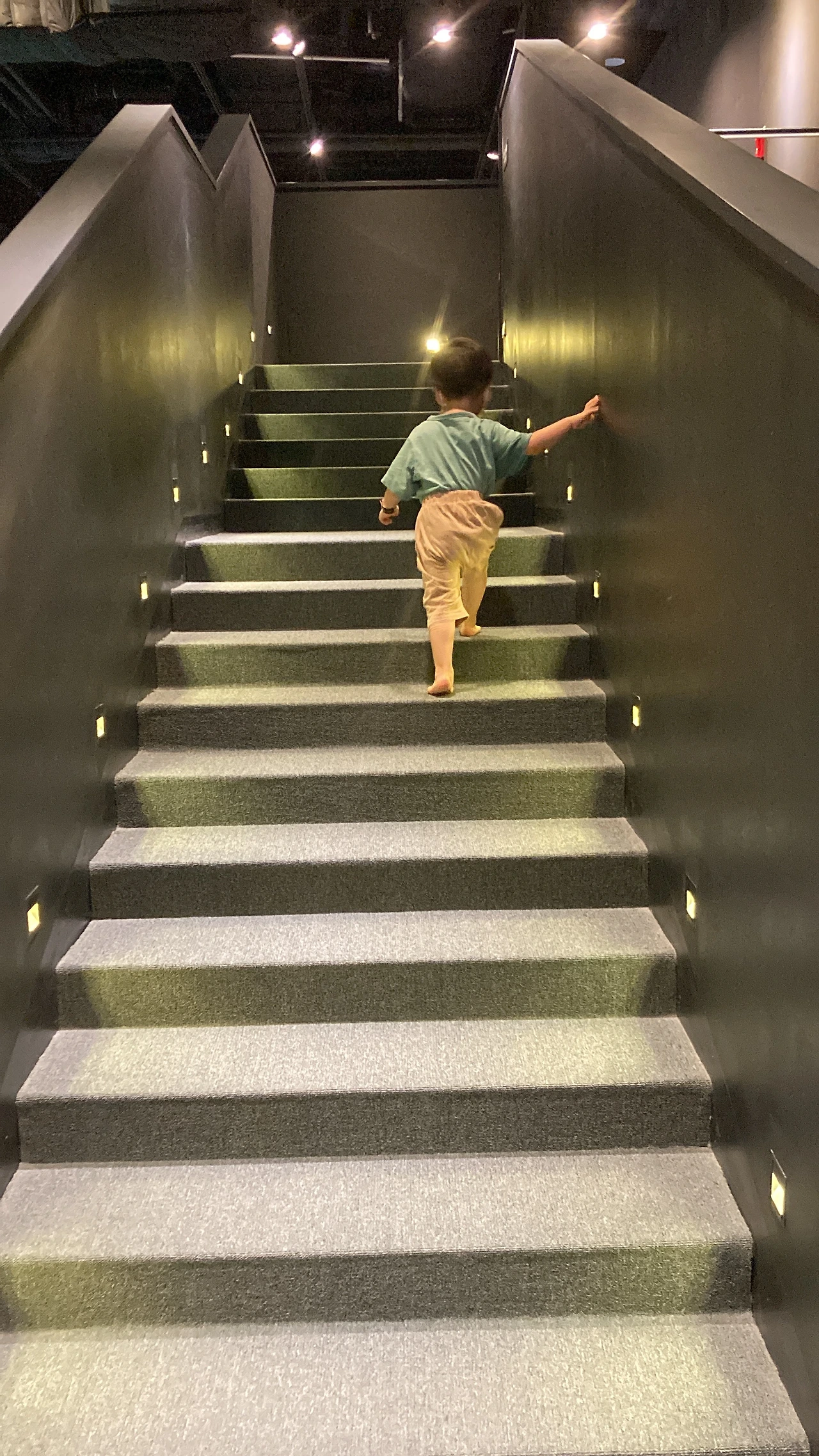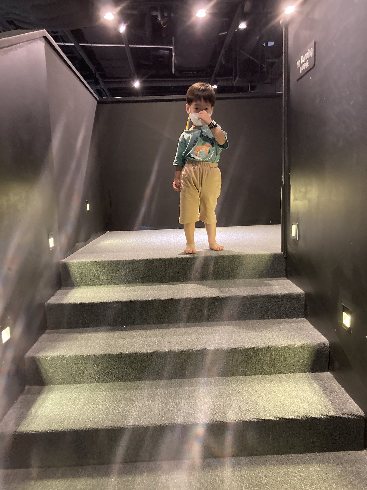 요즘 계단 오르락내리락하는 것에 푹 빠진 아들 녀석은 미끄럼틀을 타기 위해 올라가는 계단을 보더니 미소를 지었다. 미끄럼틀보다는 계단을 오르락내리락하는 활동에 더 관심이 있던 것 같았다. 미끄럼틀은 하얀색 바탕에 그림이 계속 바뀌었는데 미끄럼틀 타고 내려가는 길에 동물, 불꽃놀이, 물, 불, 블록 등 계속 바뀌는 다채로운 그림을 보는 재미가 쏠쏠했었다. 아들 녀석은 미끄럼틀이 마음에 들었는지 몇 번 더 타고 다른 곳으로 이동을 했다.