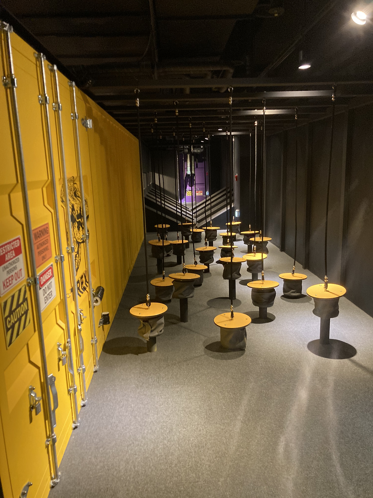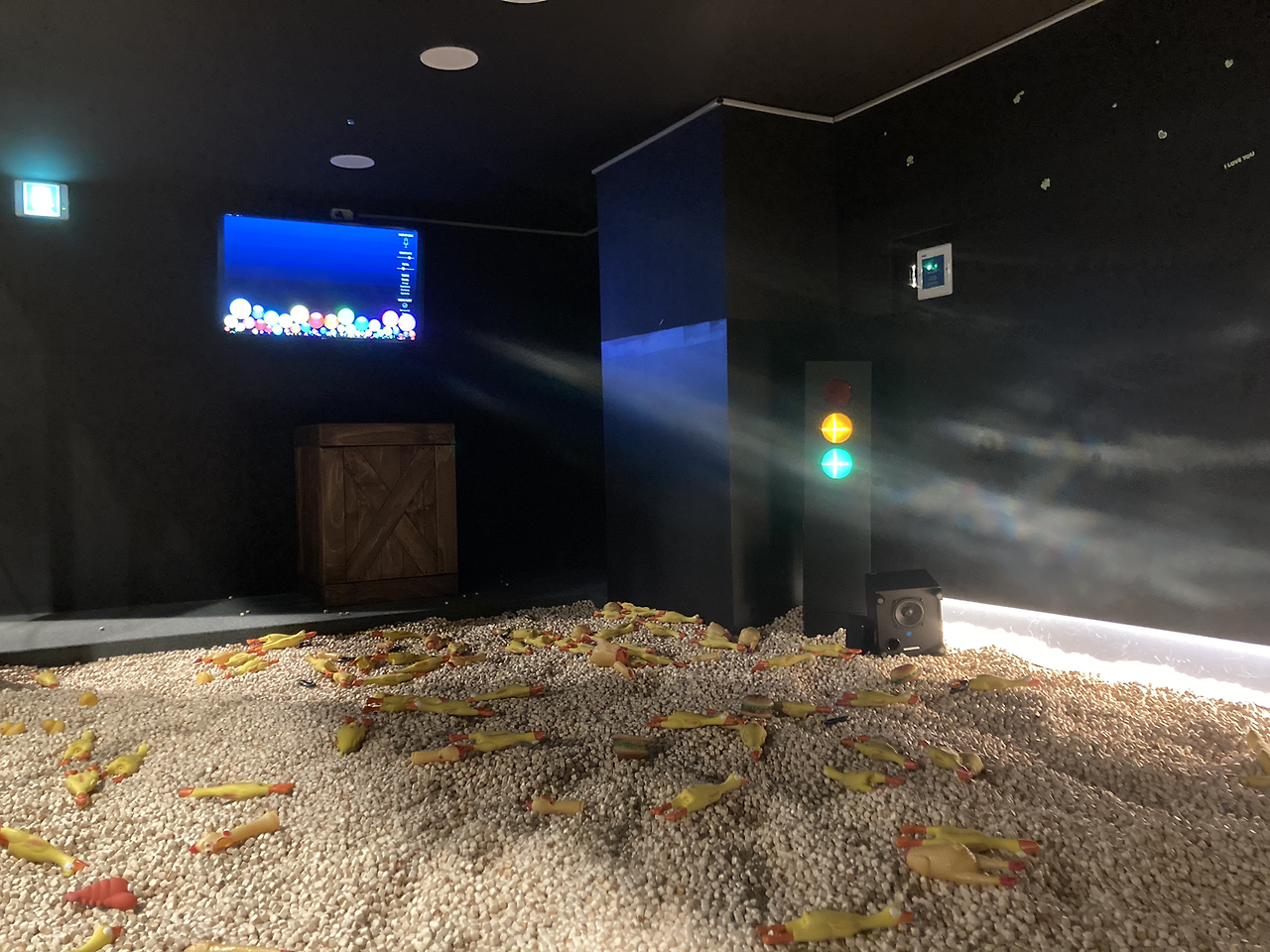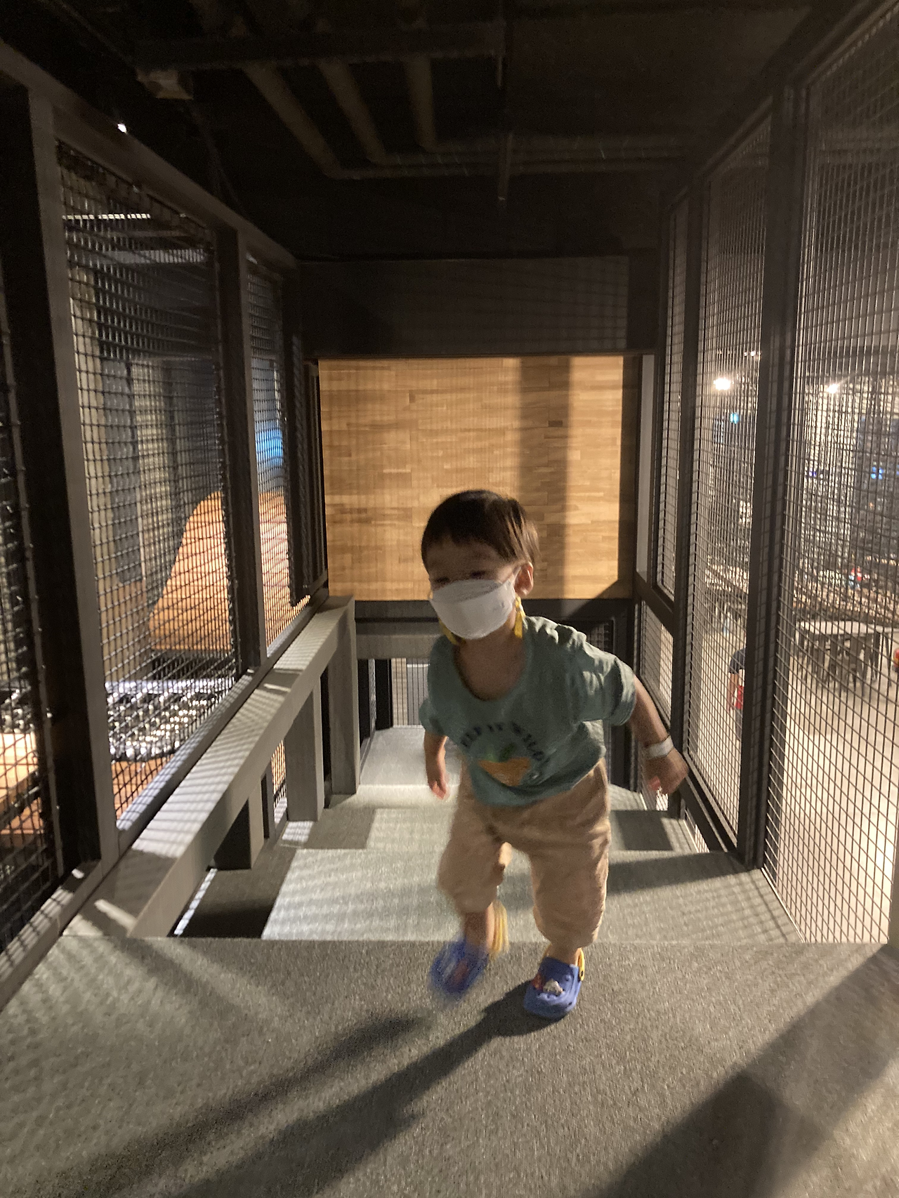 이동하자마자 발견한 슬라이딩 미끄럼틀. 흡사 하얀 바탕에 아이들을 위한 낮은 썰매장 공간이 생각났었다. 그런데 갑자기 미끄럼틀에 오르니 하얀색 도화지 같았던 미끄럼틀의 그림이 시시각각으로 바뀌는 게 아닌가. 겁이 많은 아이에게 별도의 제어장치 없이 속도감 있게 내려가는 미끄럼틀. 한번 타보더니 아이가 무서워하는 것 같았다. 미끄럼틀을 타고 내려갈 때 처음에 미끄럼틀을 탔을 때처럼 발을 대고 속도를 제어하면서 탔었다. 그렇게라도 즐길 수 있다면.