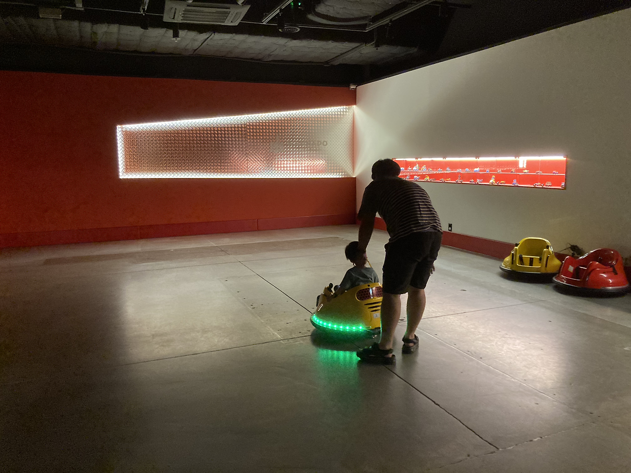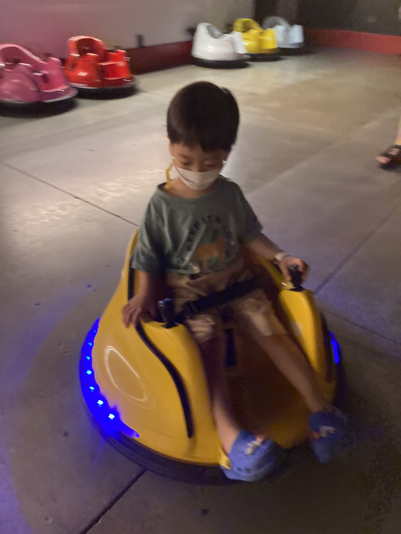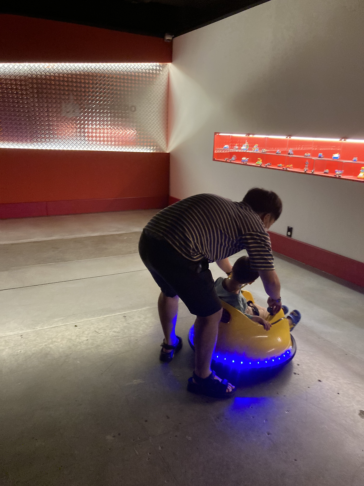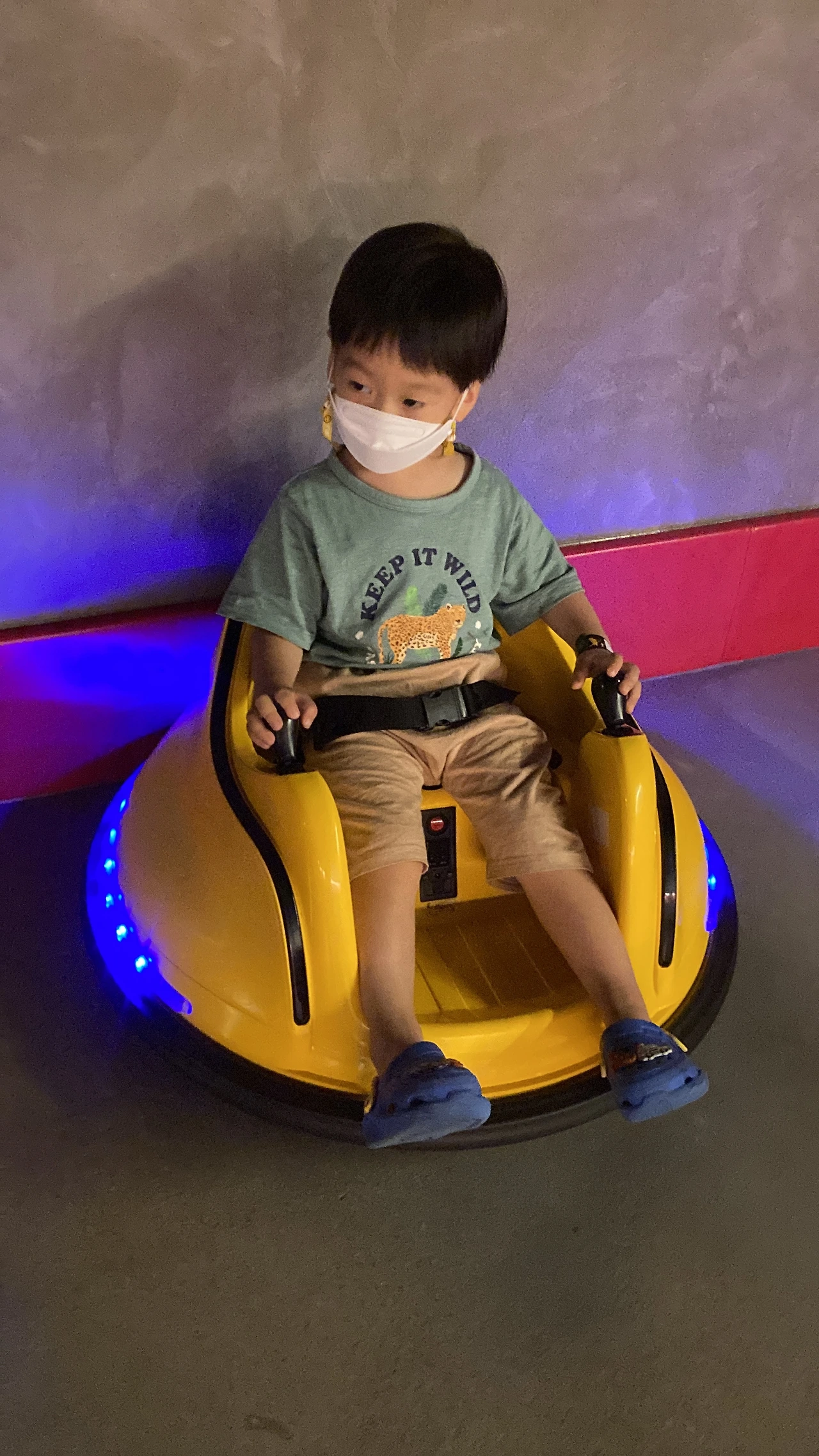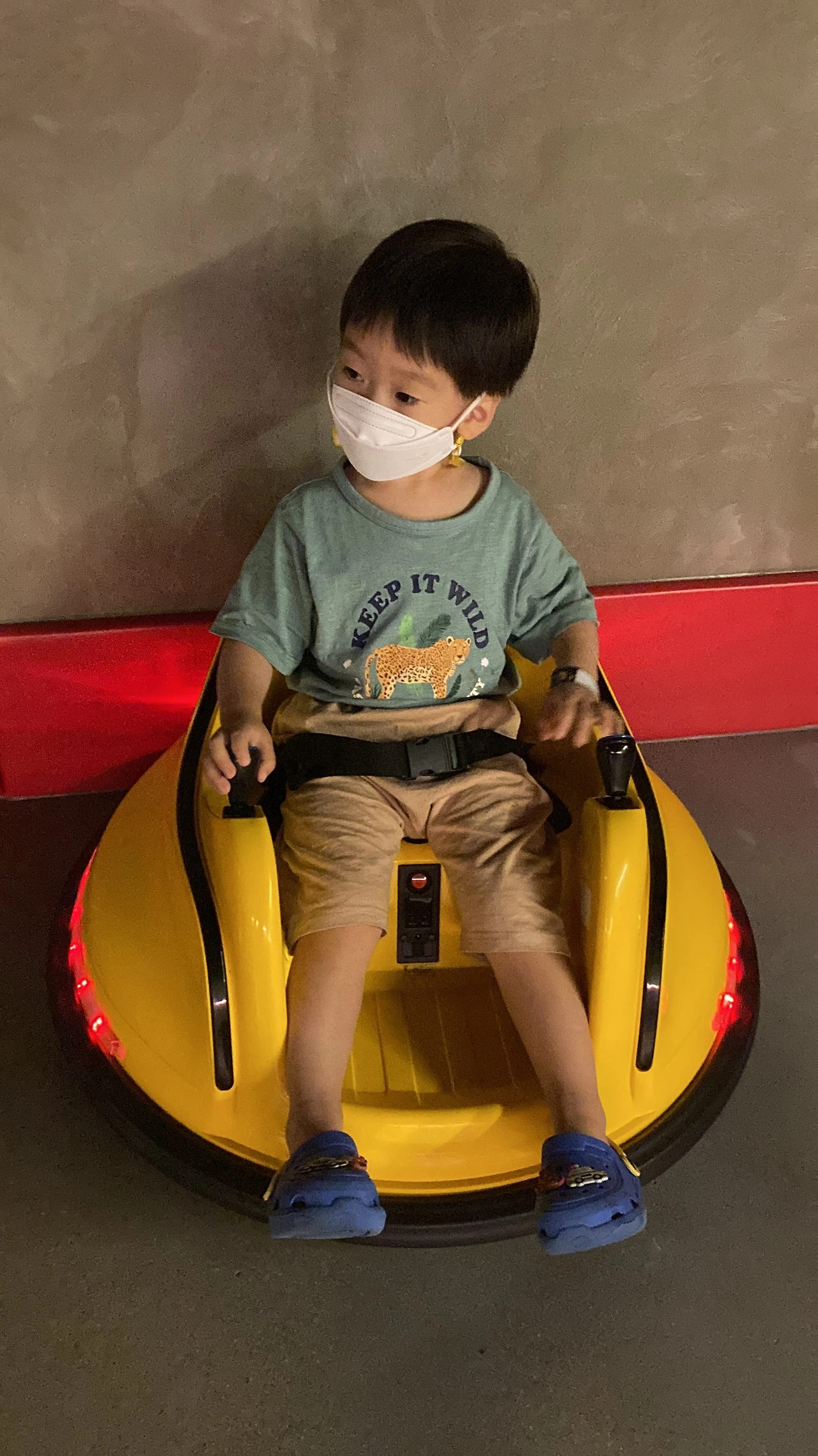 여기 키즈카페에도 범퍼카가 있었다. 몇 번 키즈카페를 놀러 가서 자동차 타는 활동을 같이 해줬더니 자동차 타는데 재미 들린 아들 녀석. 범퍼카도 예전 같으면 도망갔을 텐데 서슴없이 달려가서 범퍼카를 탔었다. 타자마자 안전띠를 채워달라고 하는 아들 녀석이 기특했었다. 처음에 탈 땐 아들 녀석이 작동할 줄 몰라 밀어줘야 했고, 옆에서 작동시켜줘야 했었지만 나중에 시간이 남아 한번 더 타볼 때는 다른 친구들이 혼자 타는 걸 보며 작동법을 알려주니 혼자서 타기도 했었다. 자동차 놀이기구와 많이 친해졌었다. 역시 경험이 많이 중요하다는 걸 깨달았다. 동네에 있는 자동차 놀이기구도 많이 태워주고 요즘 키즈카페 가는 곳마다 자동차 놀이기구를 꼭 태워줬더니 익숙해져서 그런지 서슴없이 타는 것 같았다.