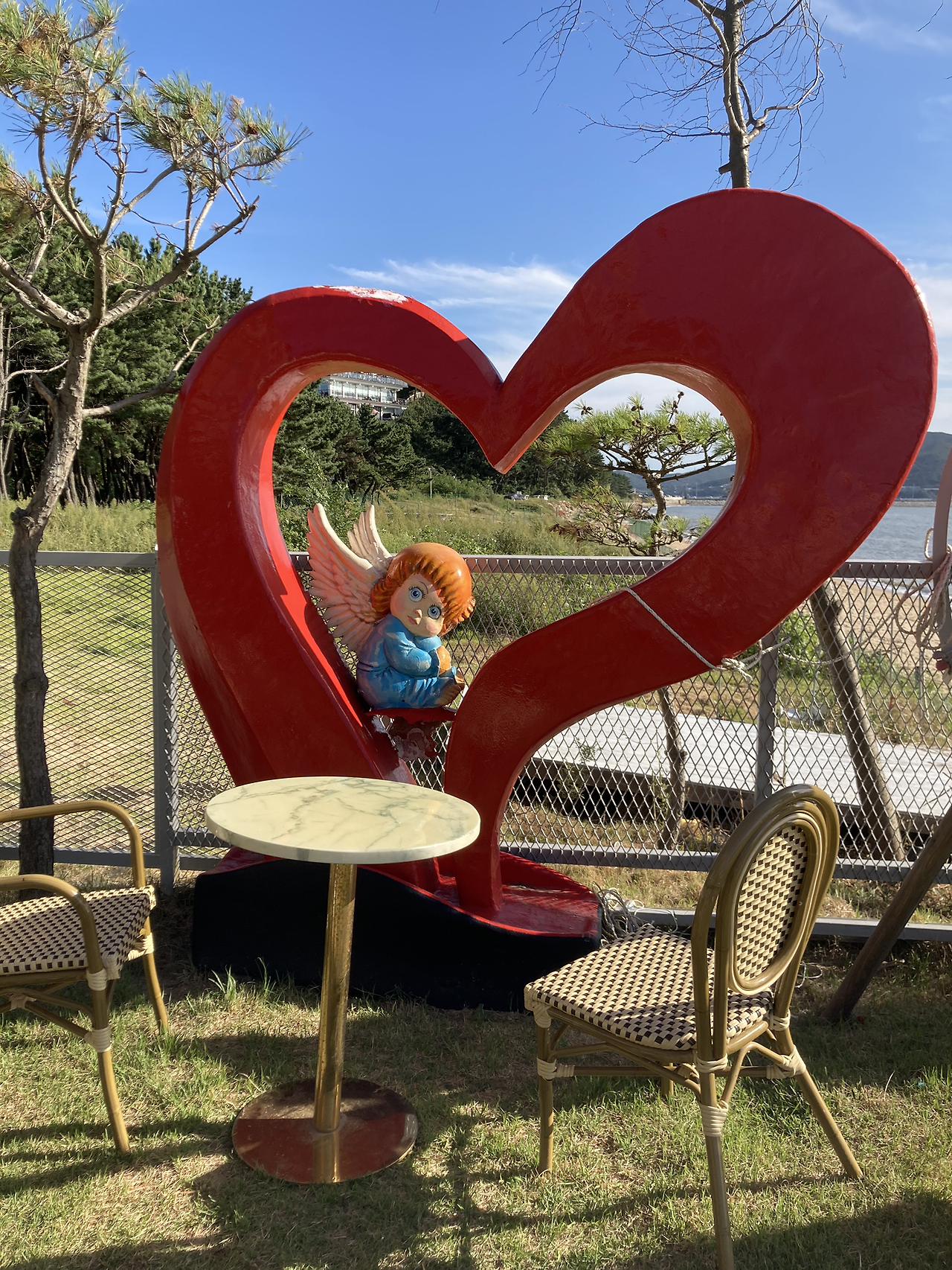 주문을 하고 난 뒤 야외에 자리를 맡았다. 이곳 카페는 입구에 들어서면서부터 인테리어 곳곳에 공항, 비행기 등 여행 콘셉트로 꾸며놓아 여행을 좋아하지만 현재 가지 못하고 있는 날 위한 공간인 듯 첫눈에 반해버렸었다.